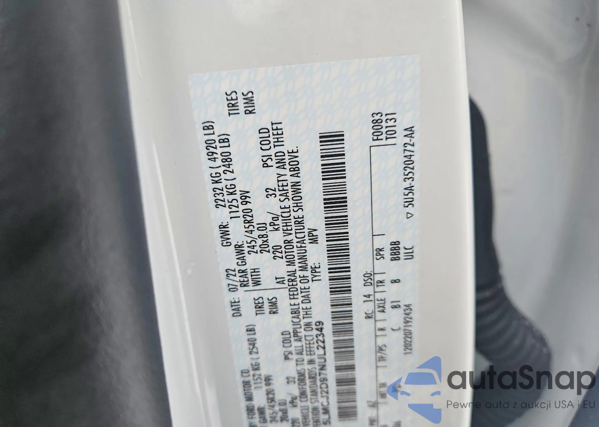 The car Lincoln Corsair 2022 (VIN 5LMCJ2D97NUL22349) has not been auctioned before. The documents are clean, and the mileage matches or is below the market average. Sold by an insurance company – we recommend purchase. Delivery to the port will take approx. 6–8 weeks.