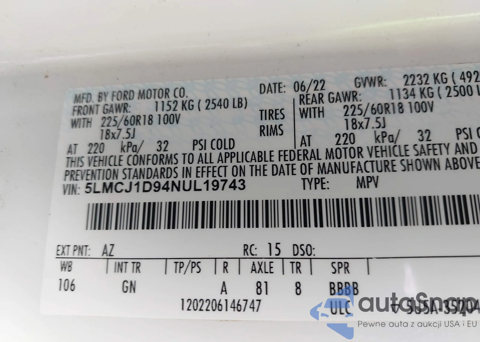 VIN: 5LMCJ1D94NUL19743