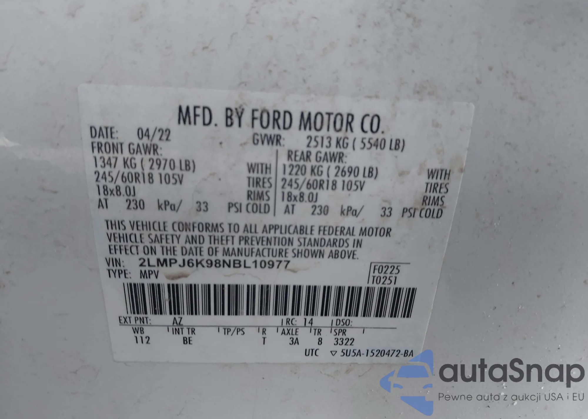 • VIN: 2LMPJ6K98NBL10977