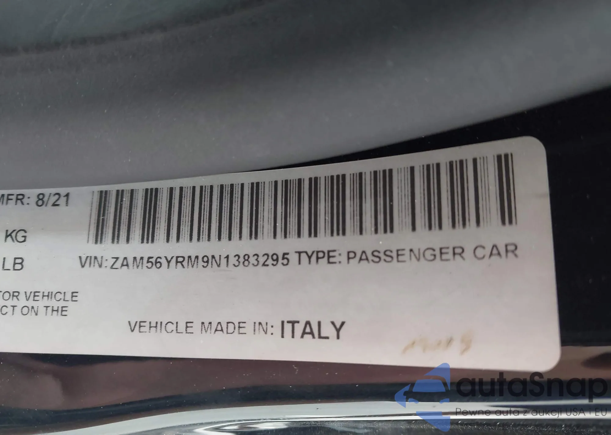 The car Maserati Quattroporte 2022 (VIN ZAM56YRM9N1383295) has not been auctioned before. The documents are clean, and the mileage matches or is below the market average. Sold by an insurance company – we recommend purchase. Delivery to the port will take approx. 6–8 weeks.