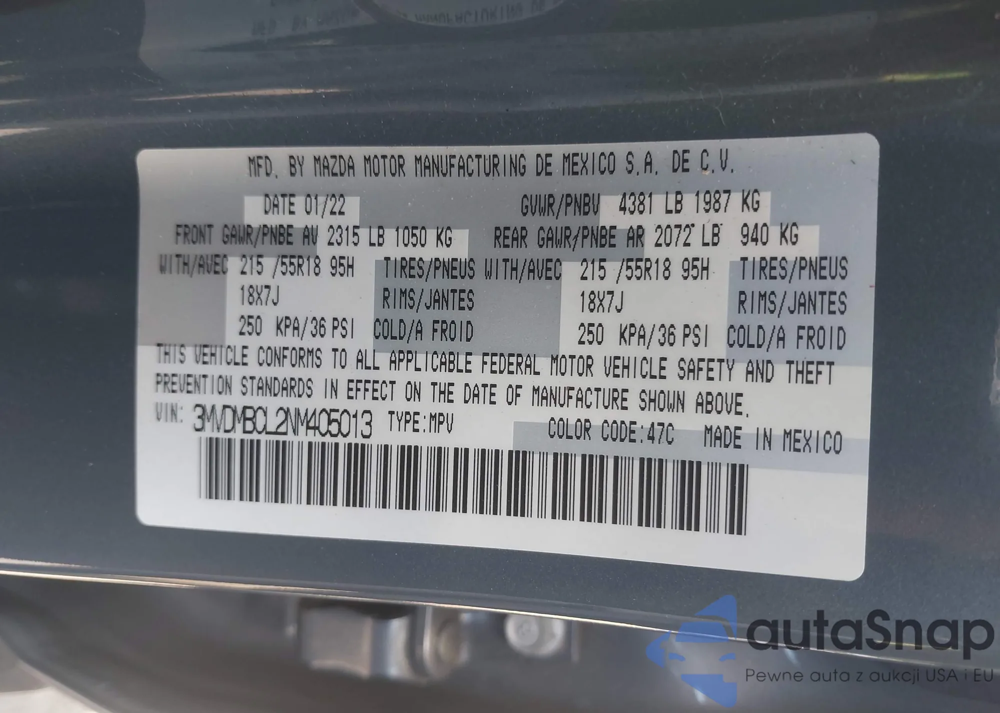 VIN: 3MVDMBCL2NM405013