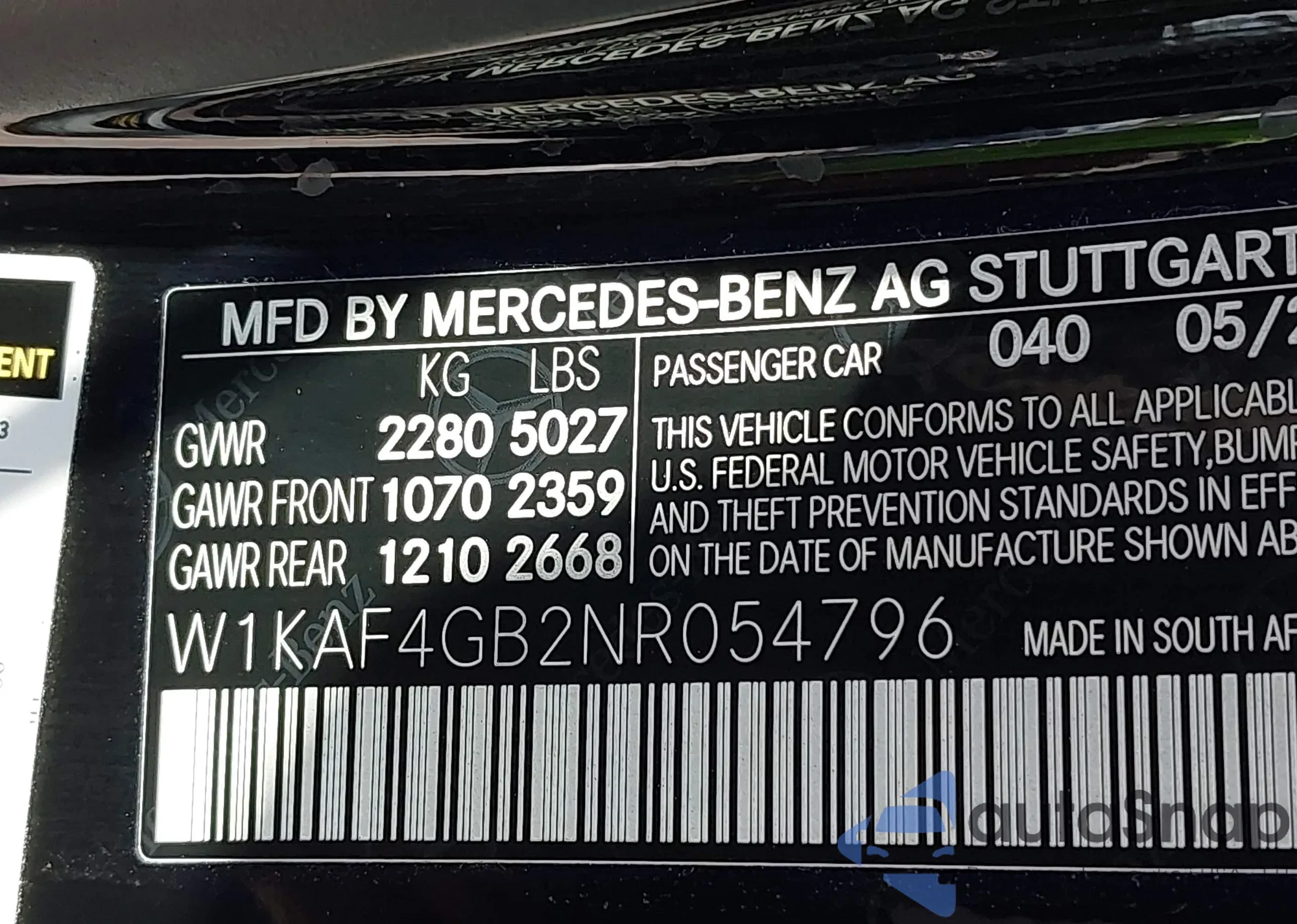 The car Mercedes-Benz C-klasse 2022 (VIN W1KAF4GB2NR054796) has not been auctioned before. The documents are clean, and the mileage matches or is below the market average. Sold by an insurance company – we recommend purchase. Delivery to the port will take approx. 6–8 weeks.