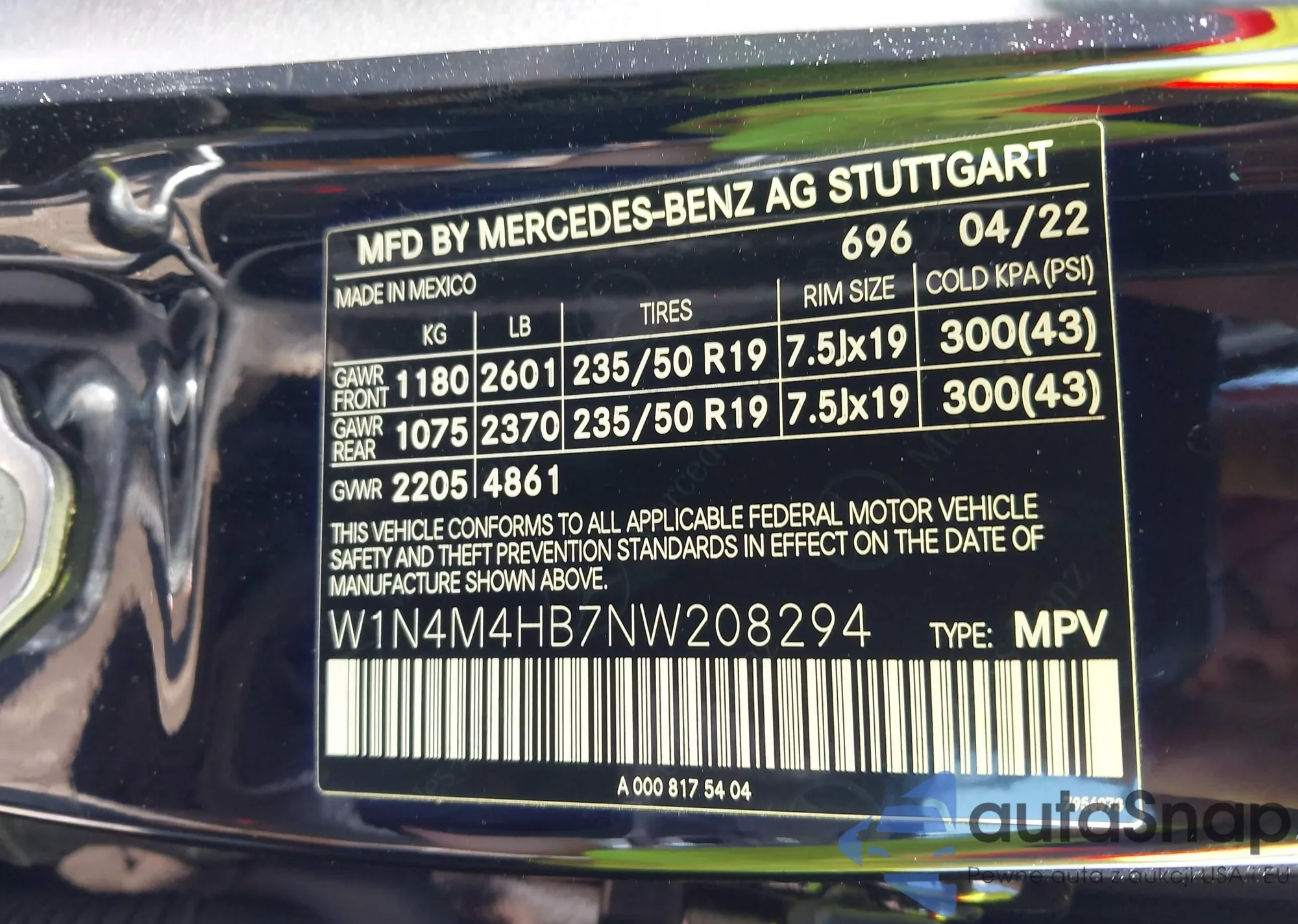 • VIN: W1N4M4HB7NW208294