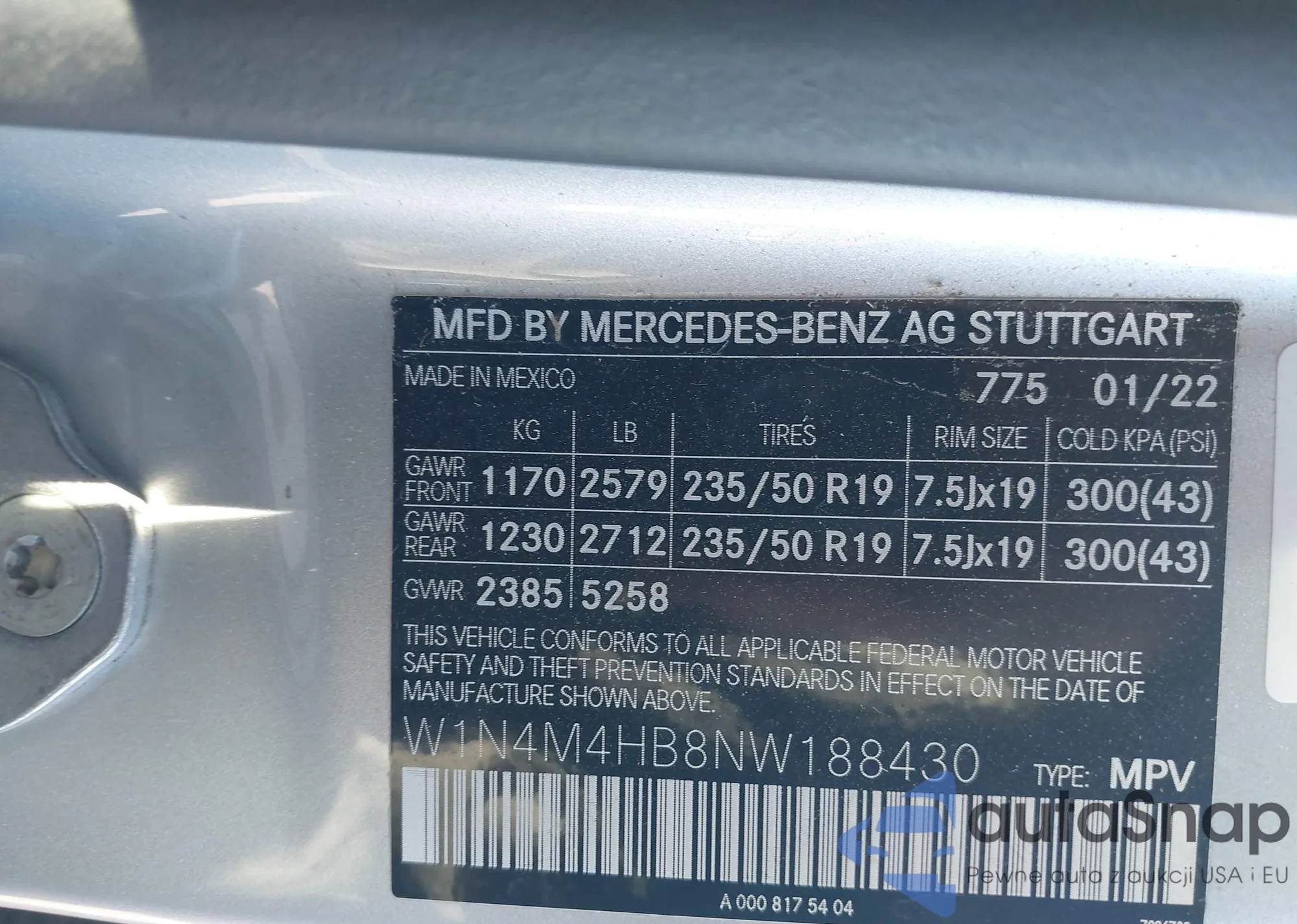 • VIN: W1N4M4HB8NW188430