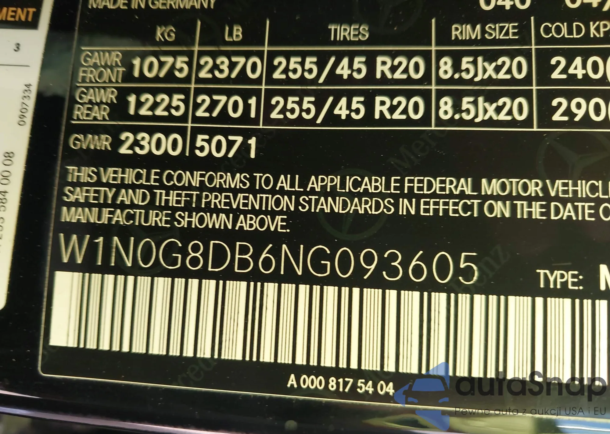 The car Mercedes-Benz GLC 2022 (VIN W1N0G8DB6NG093605) has not been auctioned before. The documents are clean, and the mileage matches or is below the market average. Sold by an insurance company – we recommend purchase. Delivery to the port will take approx. 6–8 weeks.
