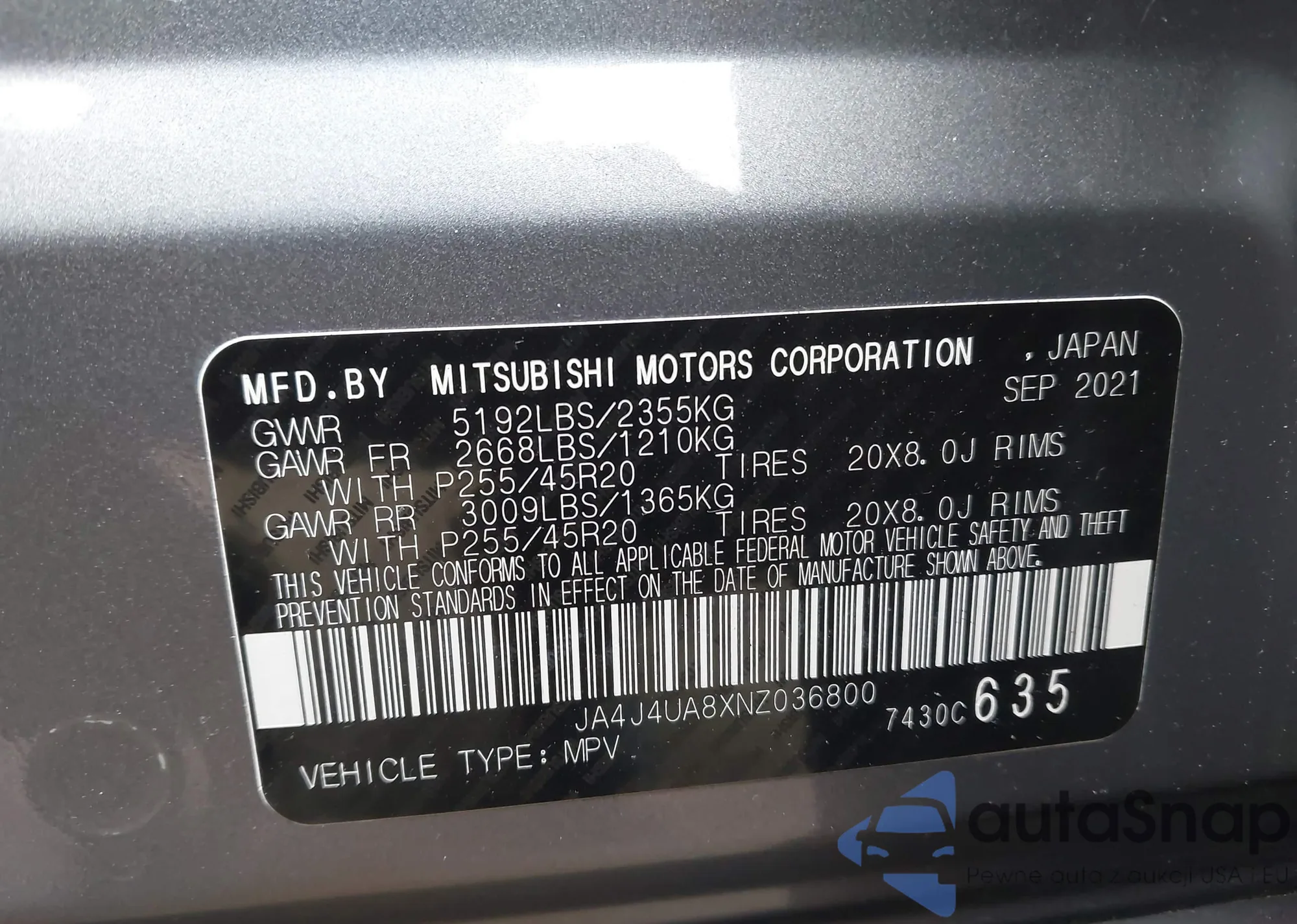 VIN: JA4J4UA8XNZ036800
