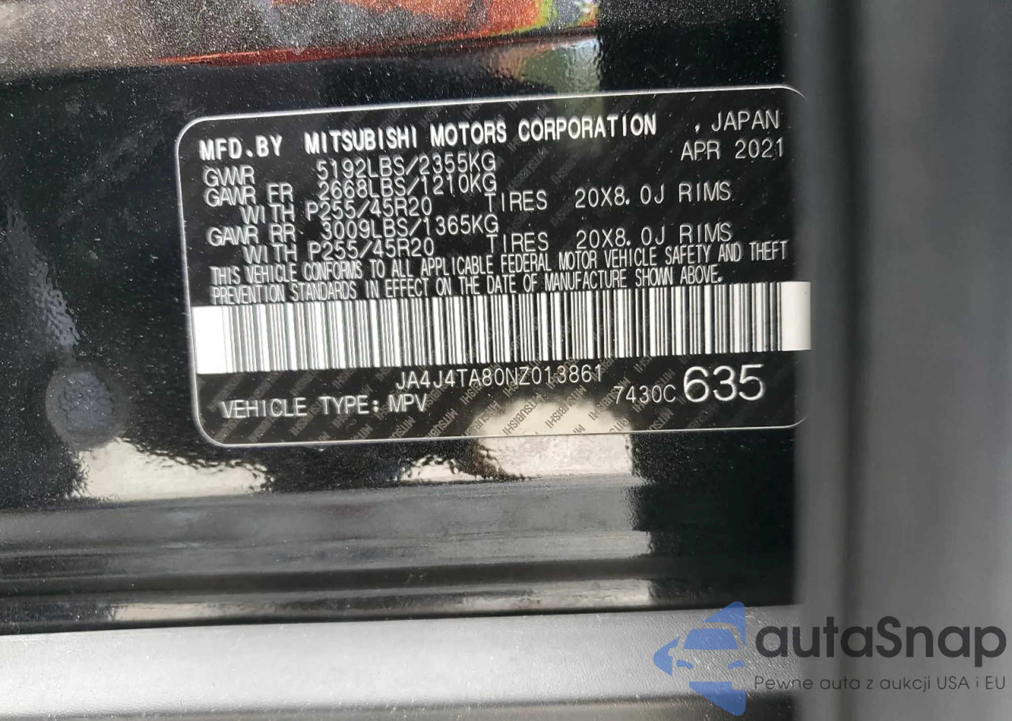 VIN: JA4J4TA80NZ013861