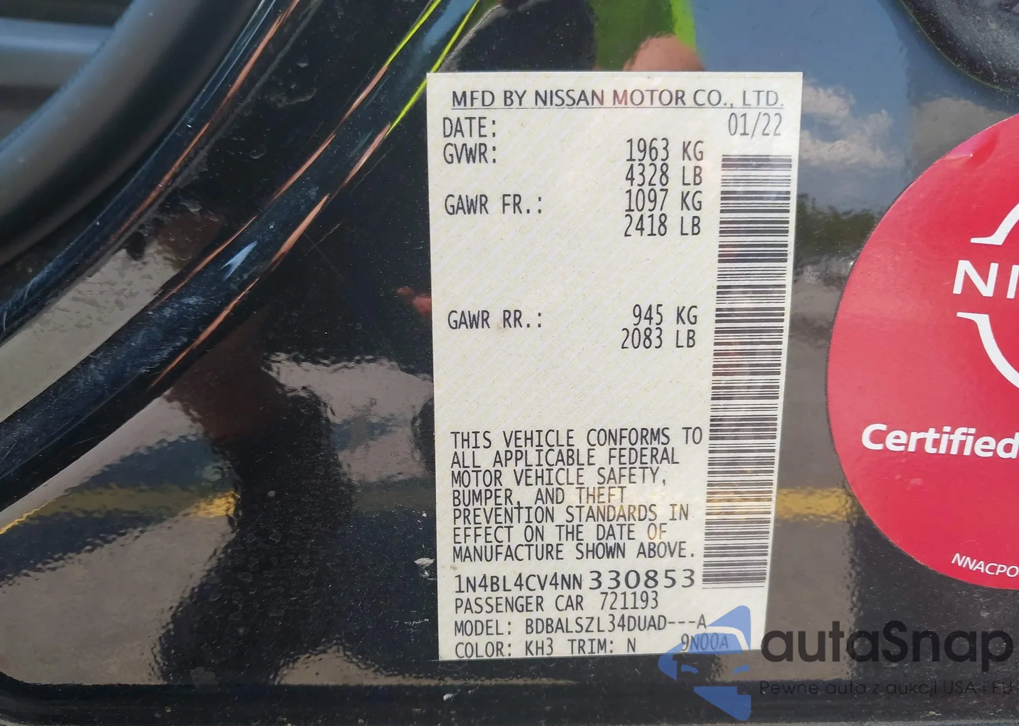 VIN: 1N4BL4CV4NN330853