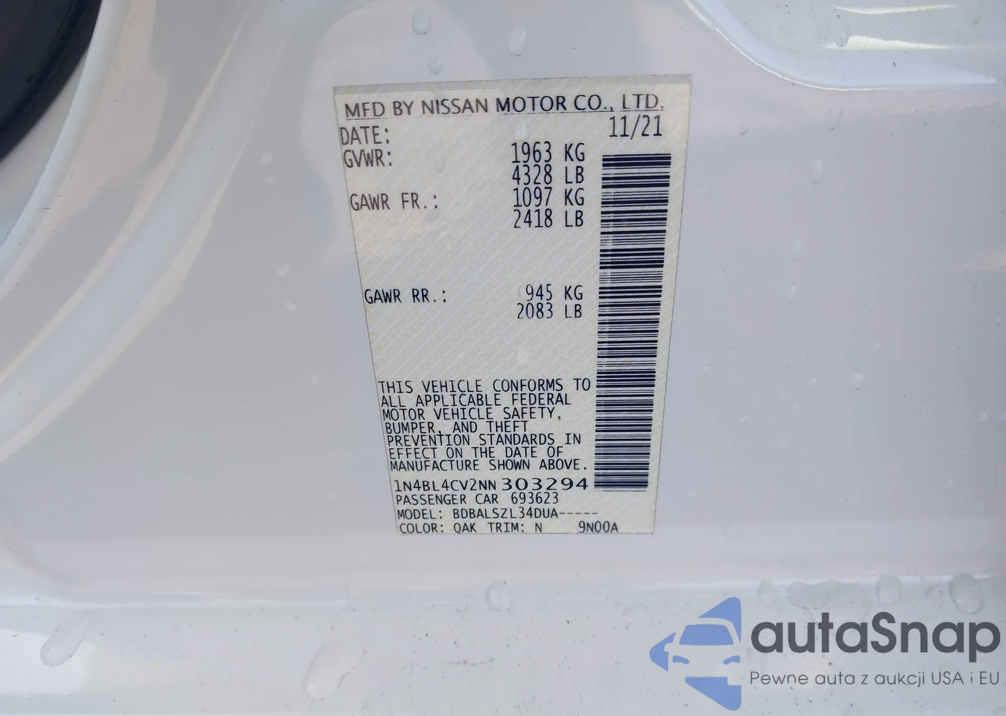 VIN: 1N4BL4CV2NN303294