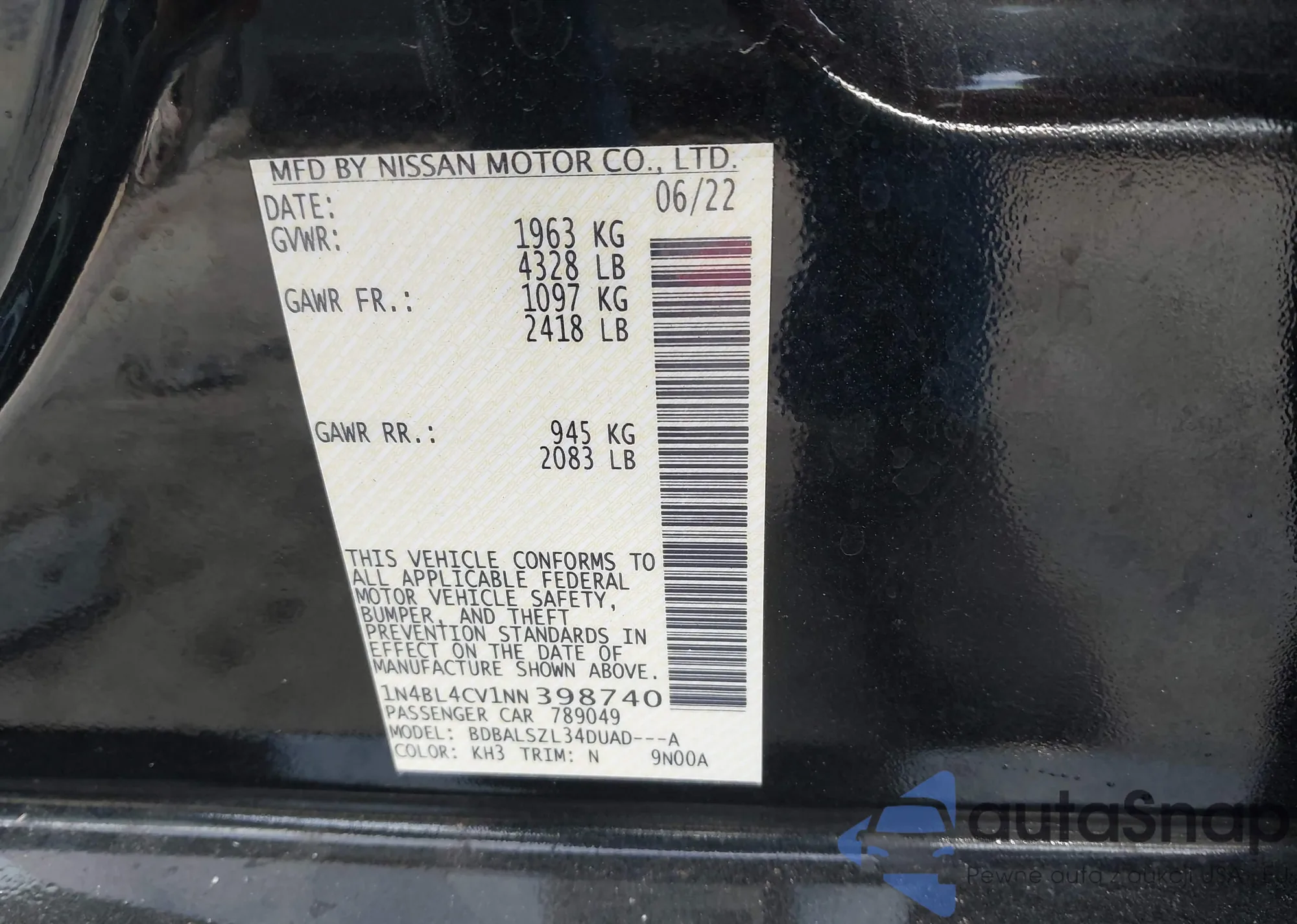 VIN: 1N4BL4CV1NN398740
