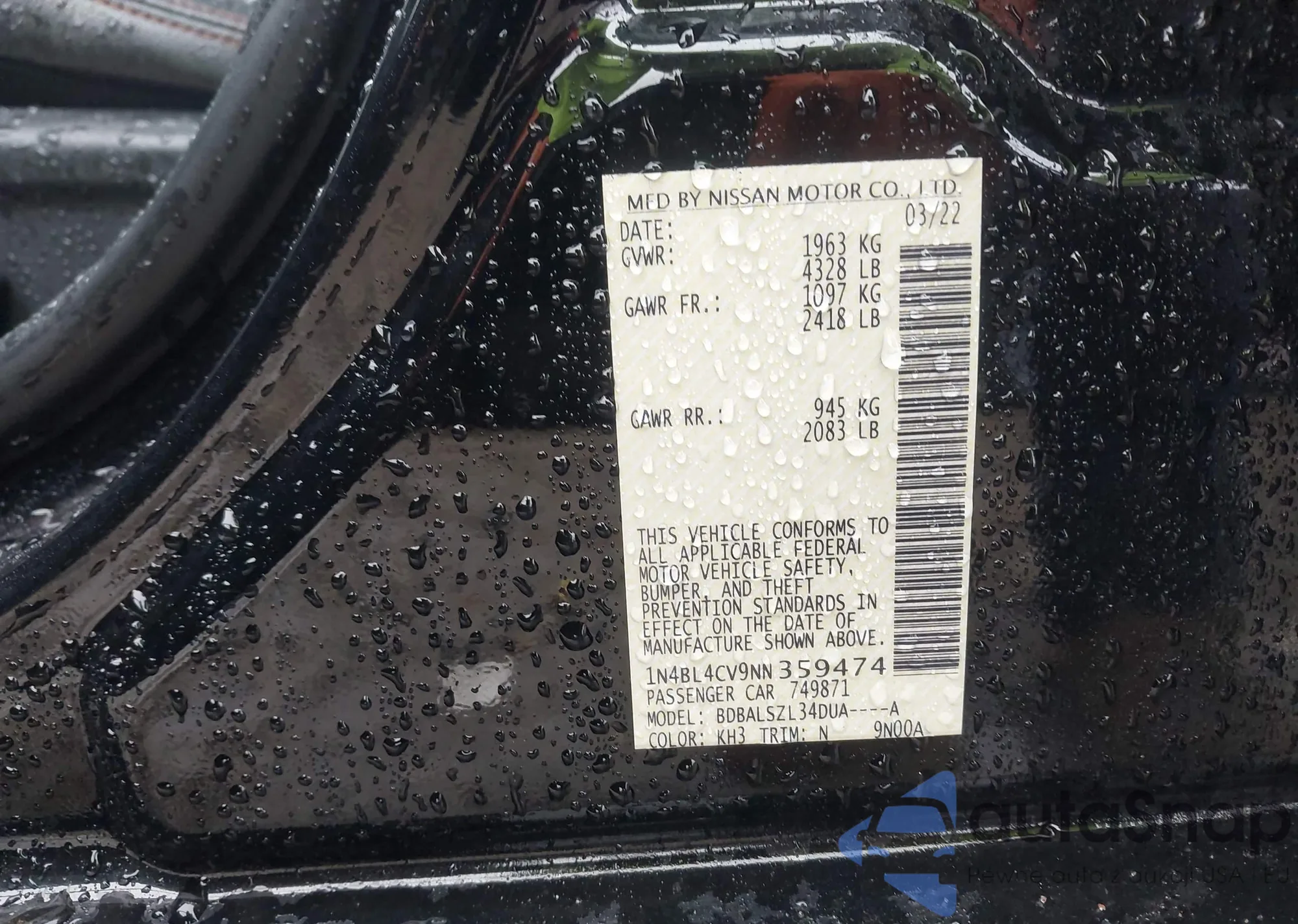 VIN: 1N4BL4CV9NN359474