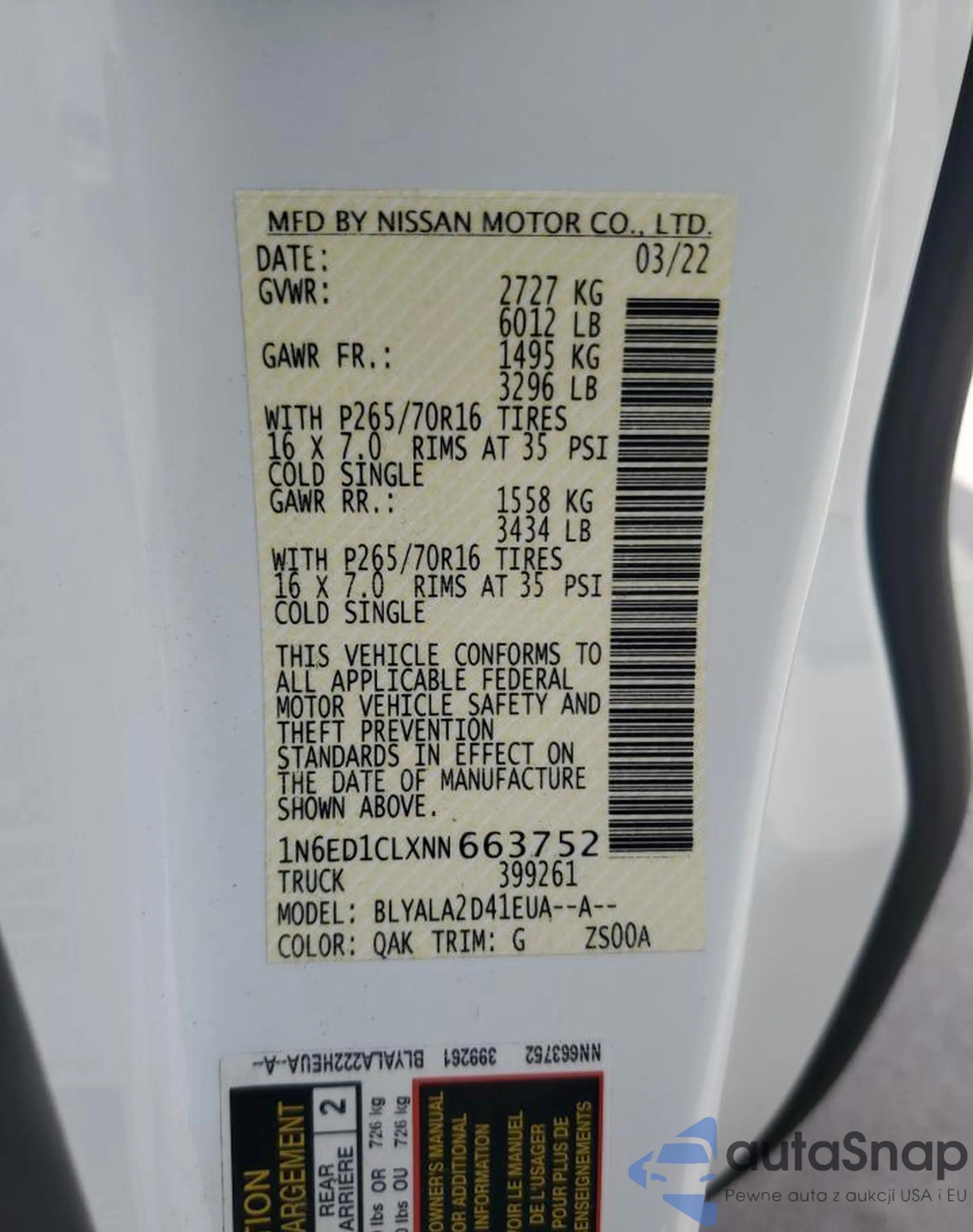 • VIN: 1N6ED1CLXNN663752