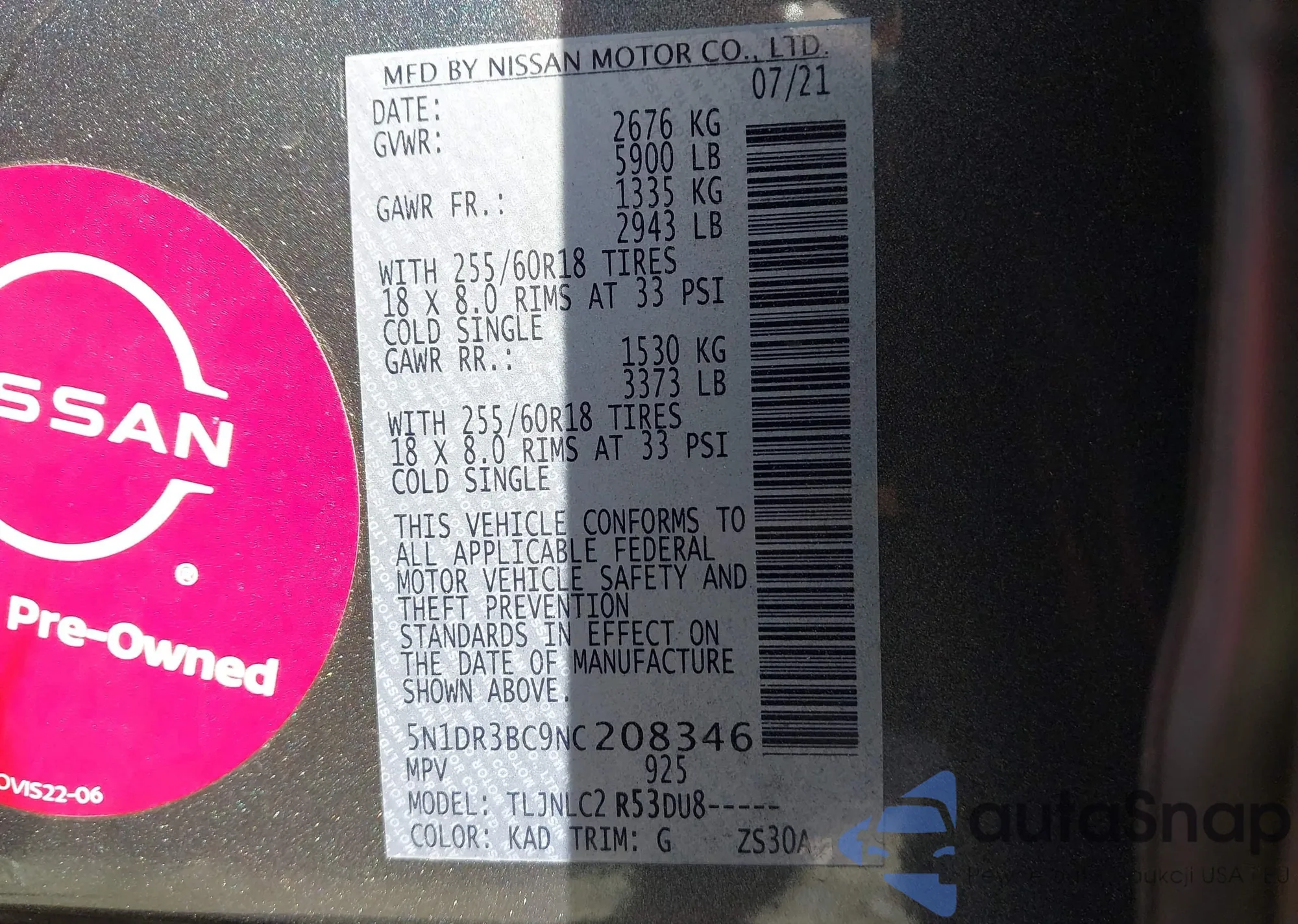 This car has been sold. Check similar offers and order a search service at AutaSnap — average price and transport cost available immediately.