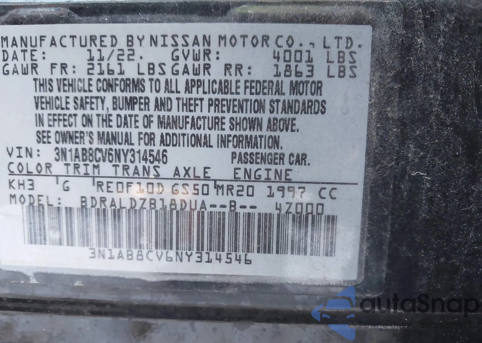VIN: 3N1AB8CV6NY314546