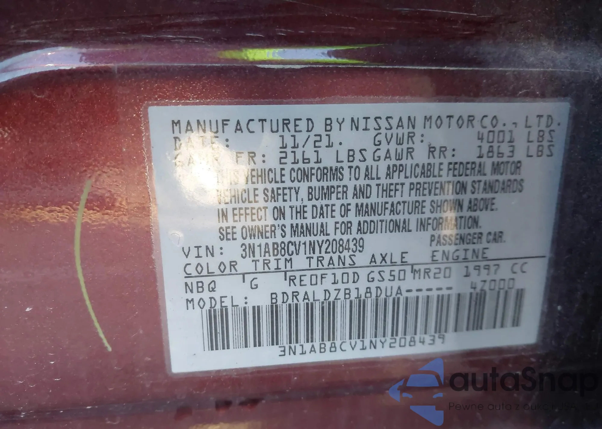 VIN: 3N1AB8CV1NY208439
