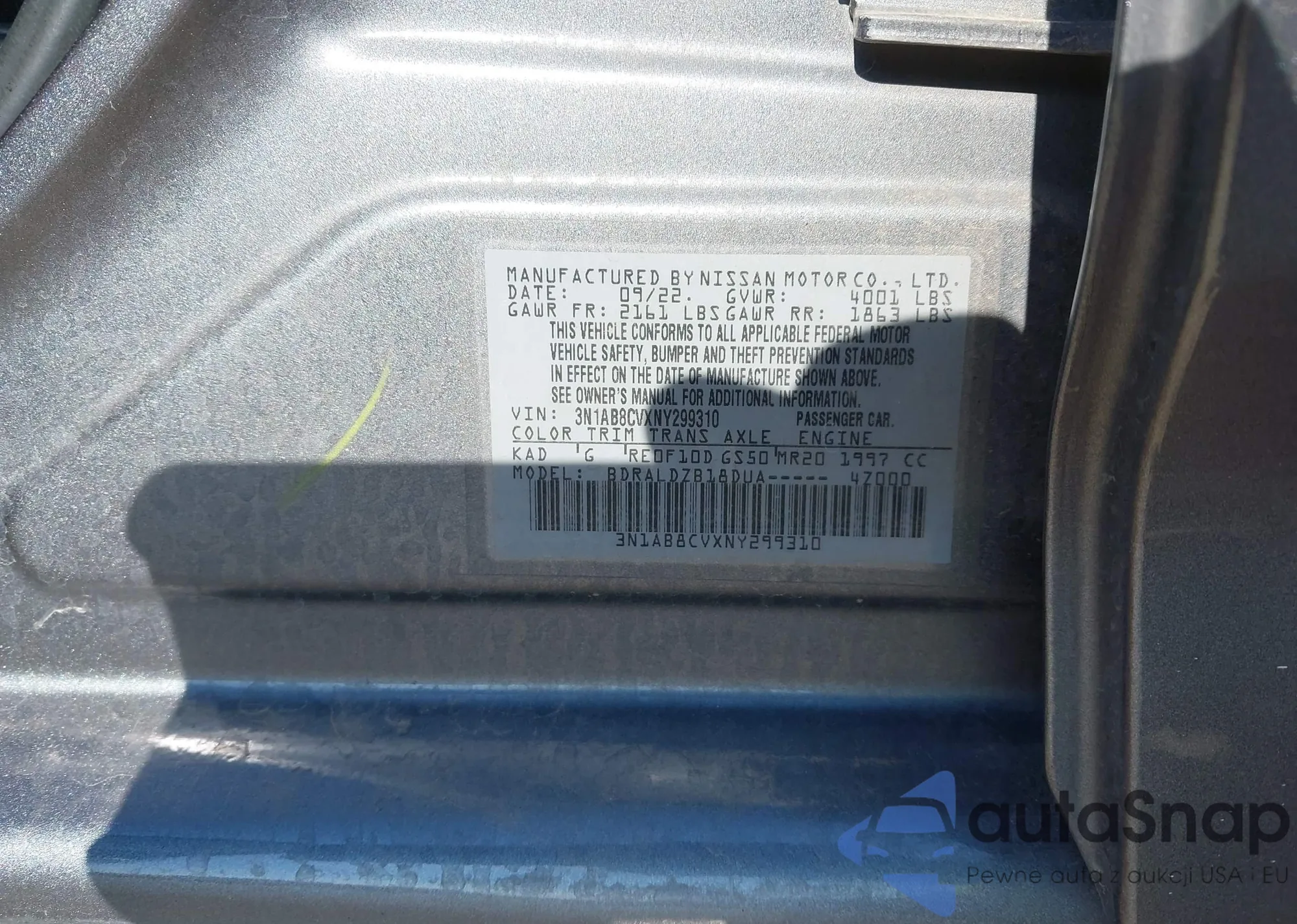The car Nissan Sentra 2022 (VIN 3N1AB8CVXNY299310) has not been auctioned before. The documents are clean, and the mileage matches or is below the market average. Sold by an insurance company – we recommend purchase. Delivery to the port will take approx. 6–8 weeks.
