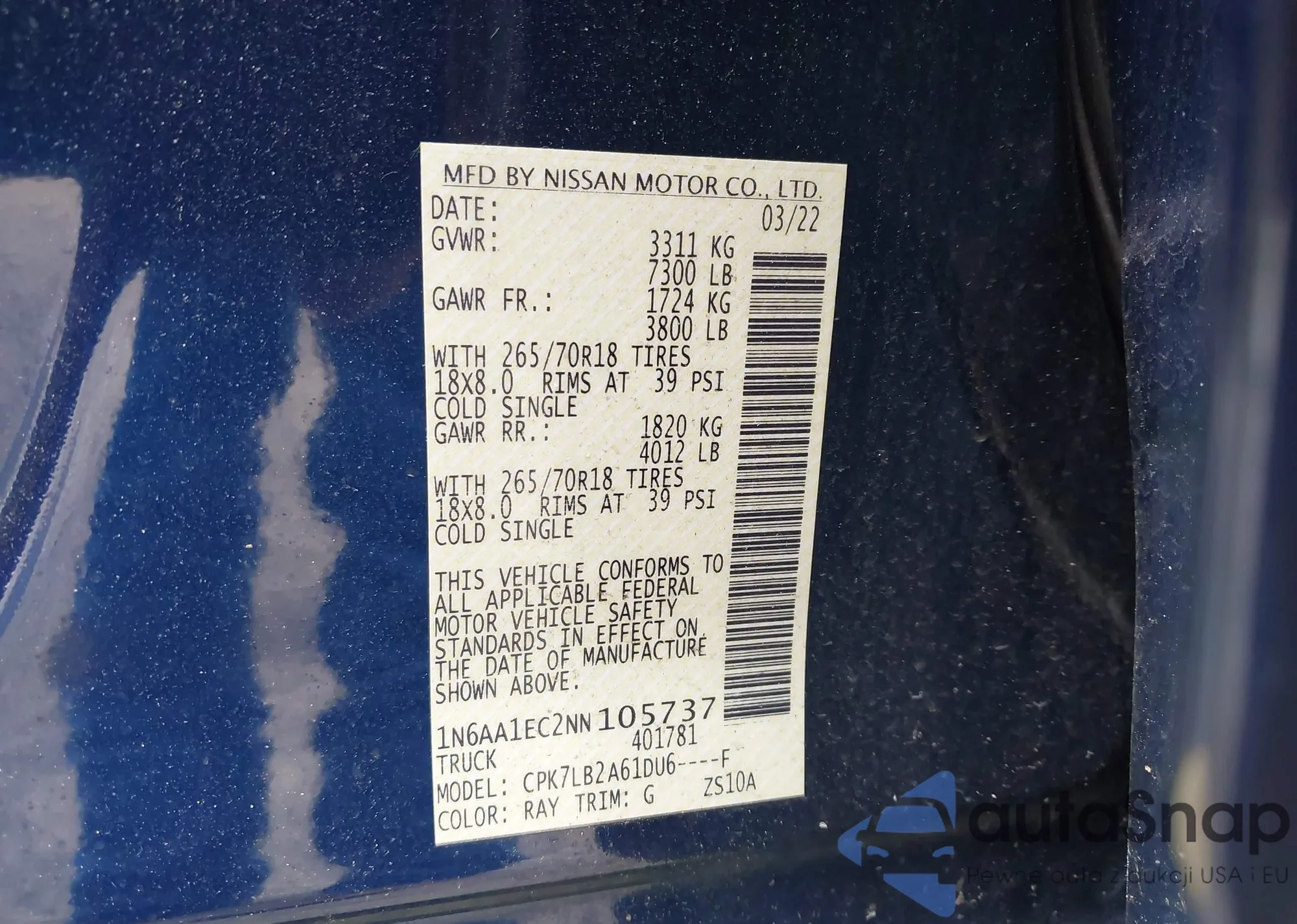 Make: 2022 Nissan Titan Sv ...