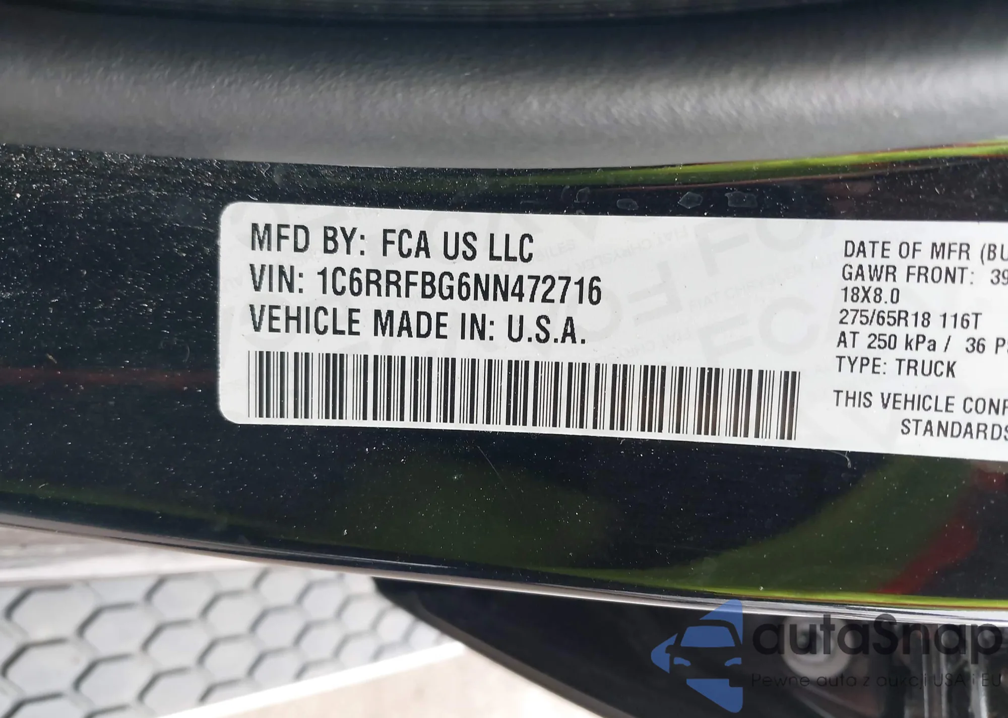 VIN: 1C6RRFBG6NN472716