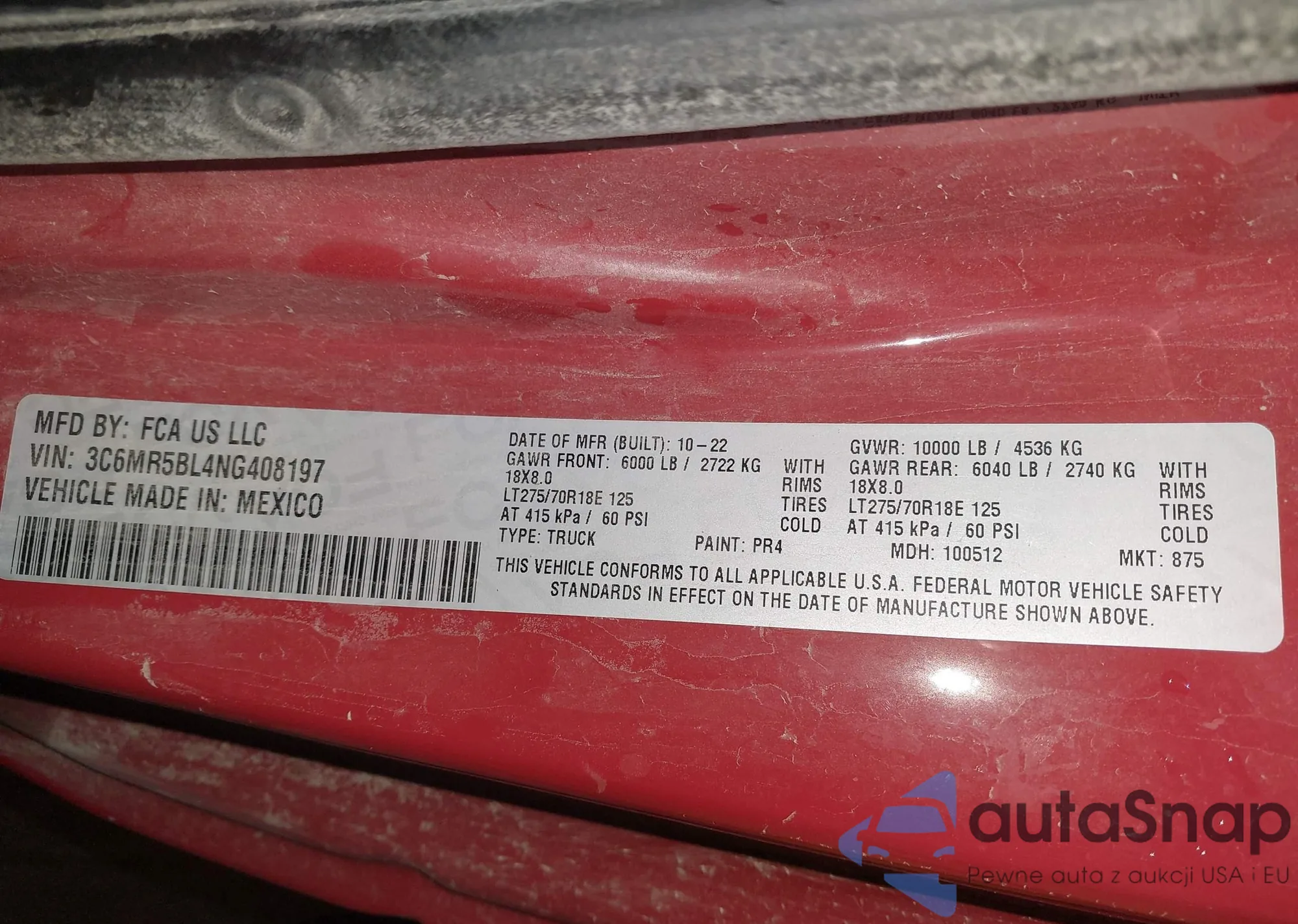 VIN: 3C6MR5BL4NG408197