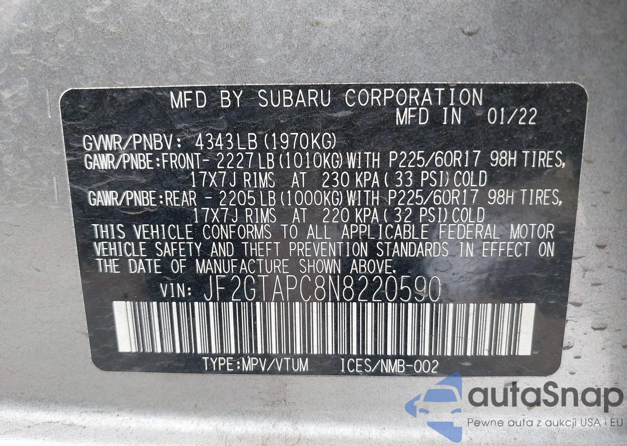 VIN: JF2GTAPC8N8220590