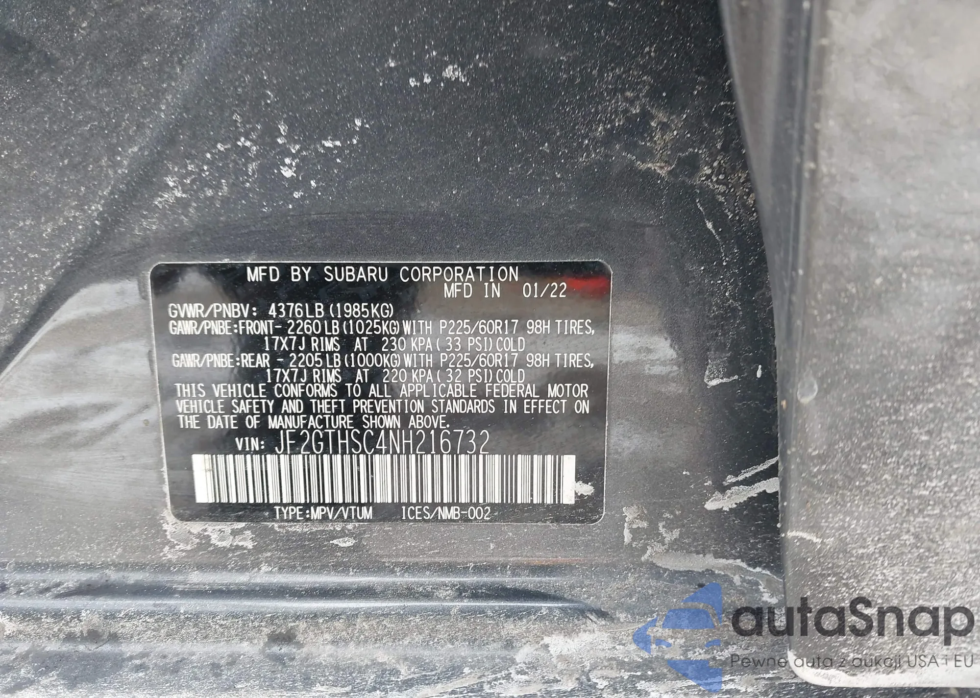 • VIN: JF2GTHSC4NH216732