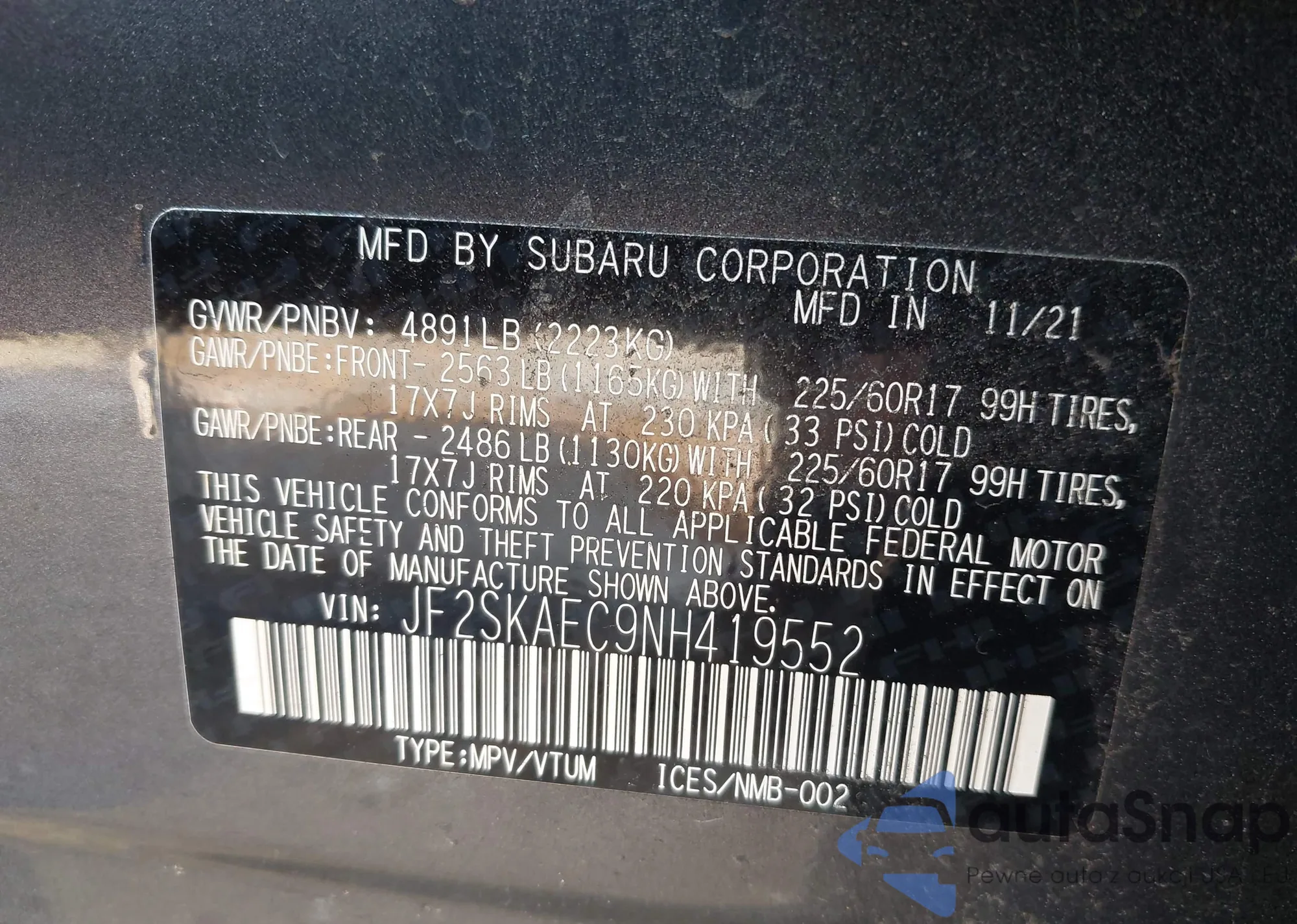 VIN: JF2SKAEC9NH419552