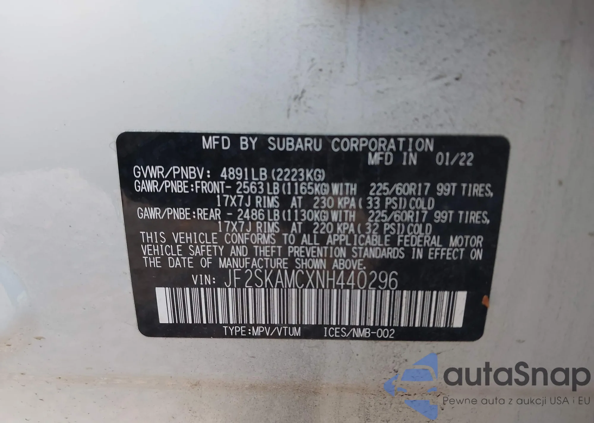 VIN: JF2SKAMCXNH440296