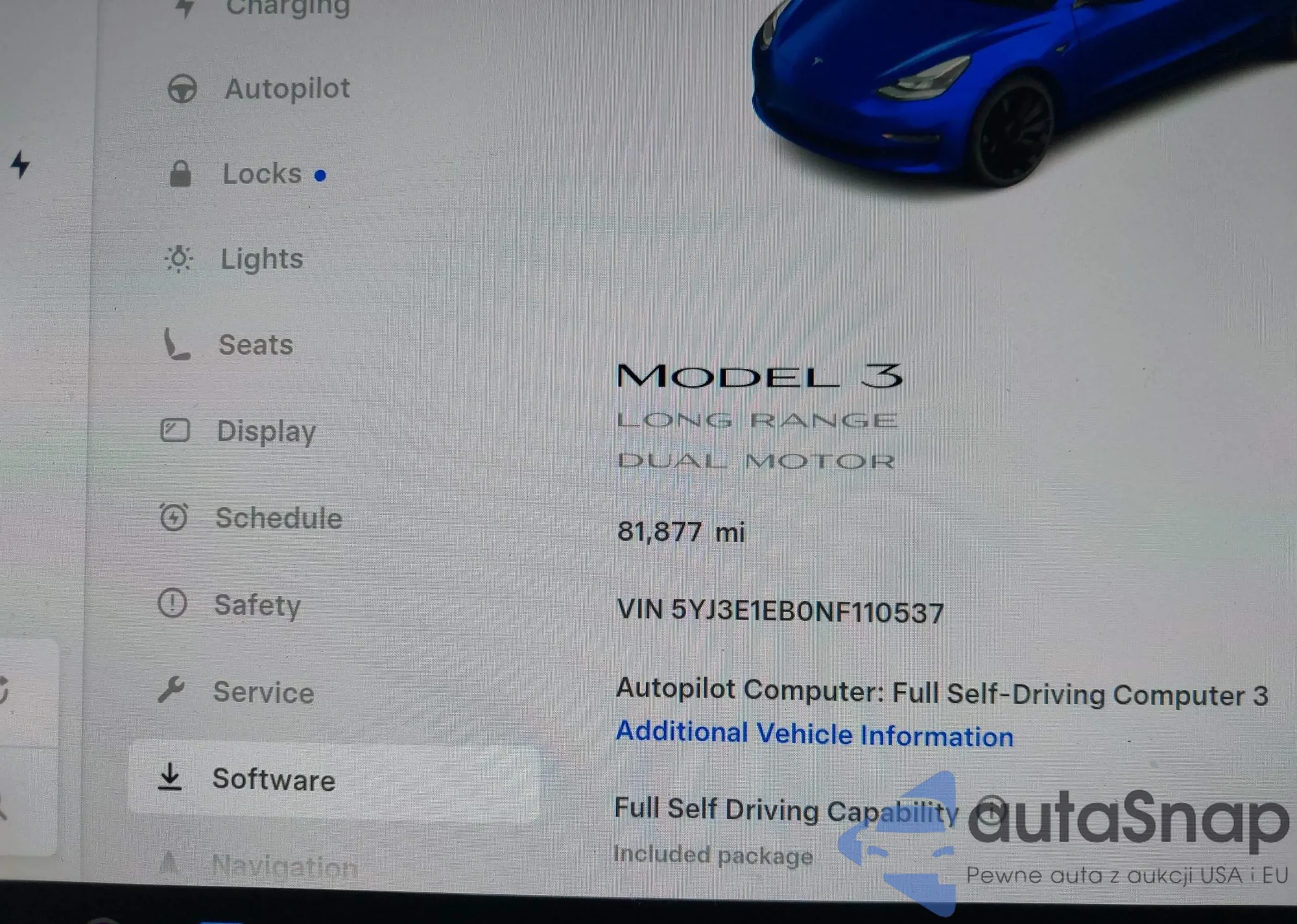 The car Tesla Model 3 2022 (VIN 5YJ3E1EB0NF110537) has not been auctioned before. The documents are clean, and the mileage matches or is below the market average. Sold by an insurance company – we recommend purchase. Delivery to the port will take approx. 6–8 weeks.