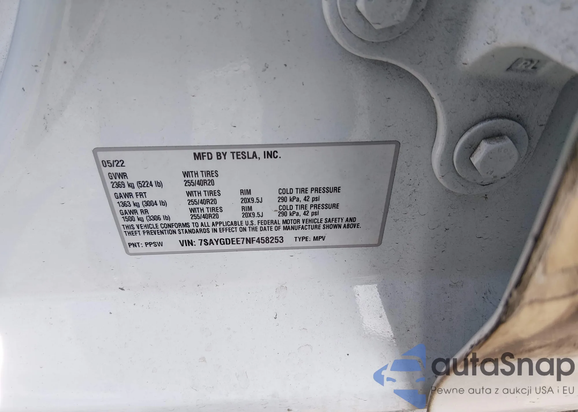 The car Tesla Model Y 2022 (VIN 7SAYGDEE7NF458253) has not been auctioned before. The documents are clean, and the mileage matches or is below the market average. Sold by an insurance company – we recommend purchase. Delivery to the port will take approx. 6–8 weeks.