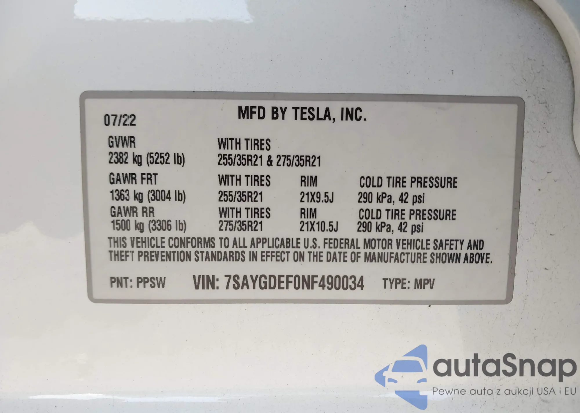 • VIN: 7SAYGDEF0NF490034