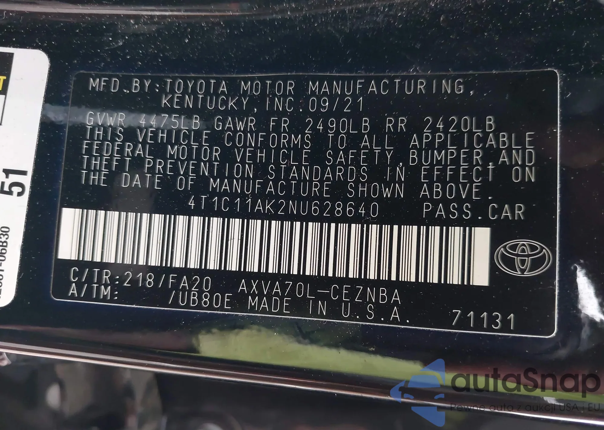 VIN: 4T1C11AK2NU628640