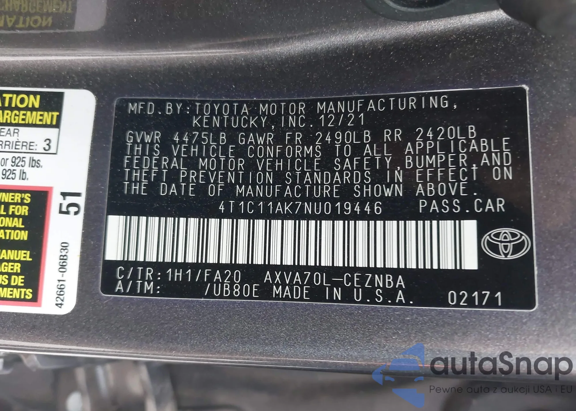 VIN: 4T1C11AK7NU019446