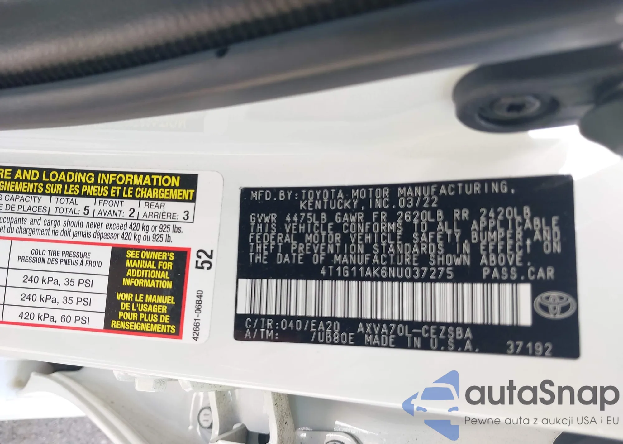 • VIN: 4T1G11AK6NU037275