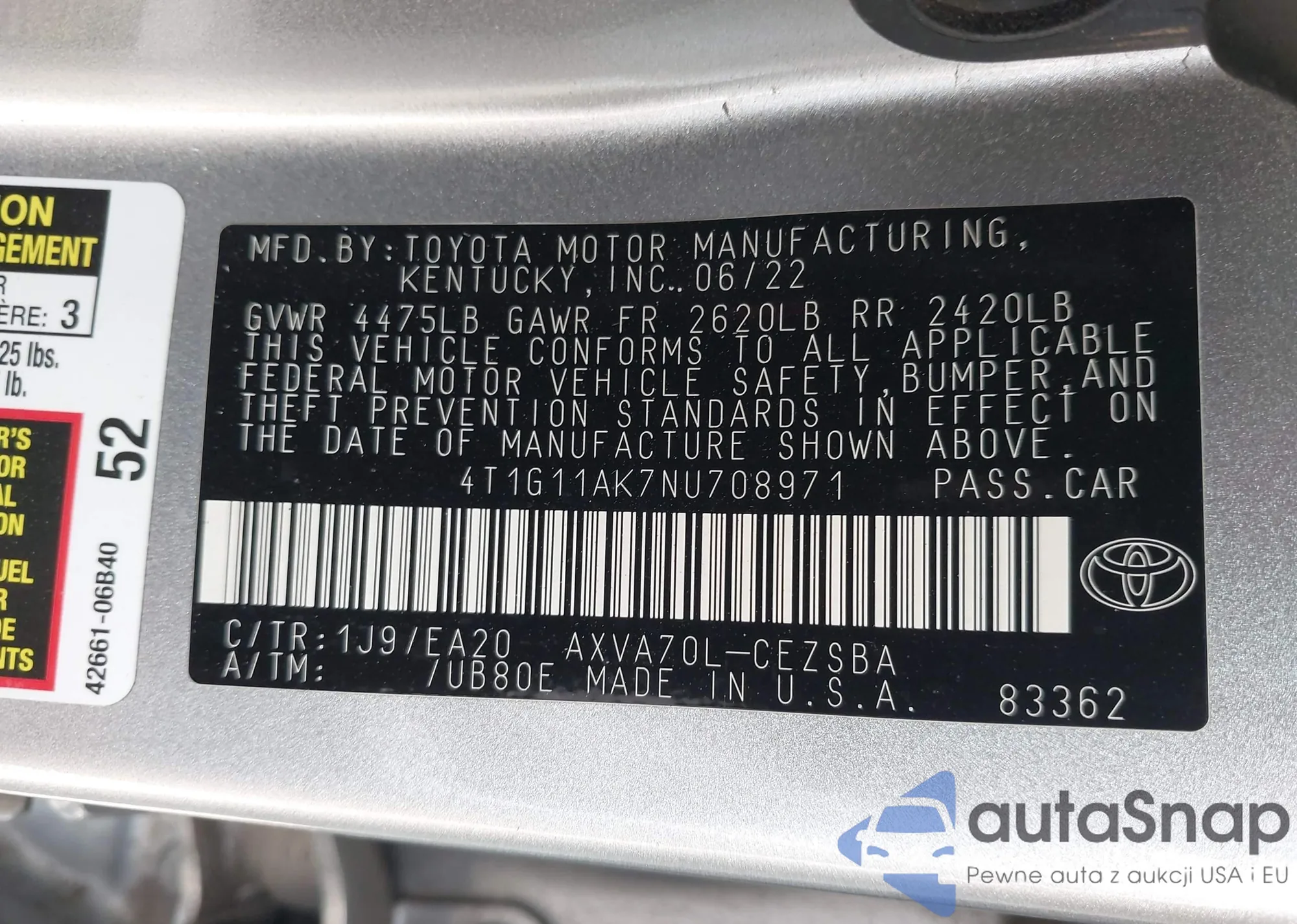 VIN: 4T1G11AK7NU708971