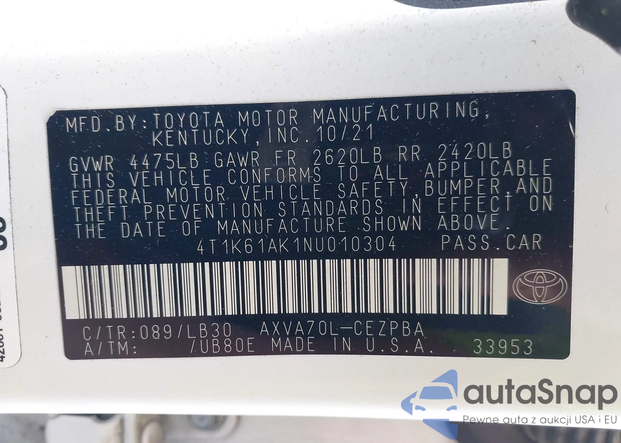 • VIN: 4T1K61AK1NU010304