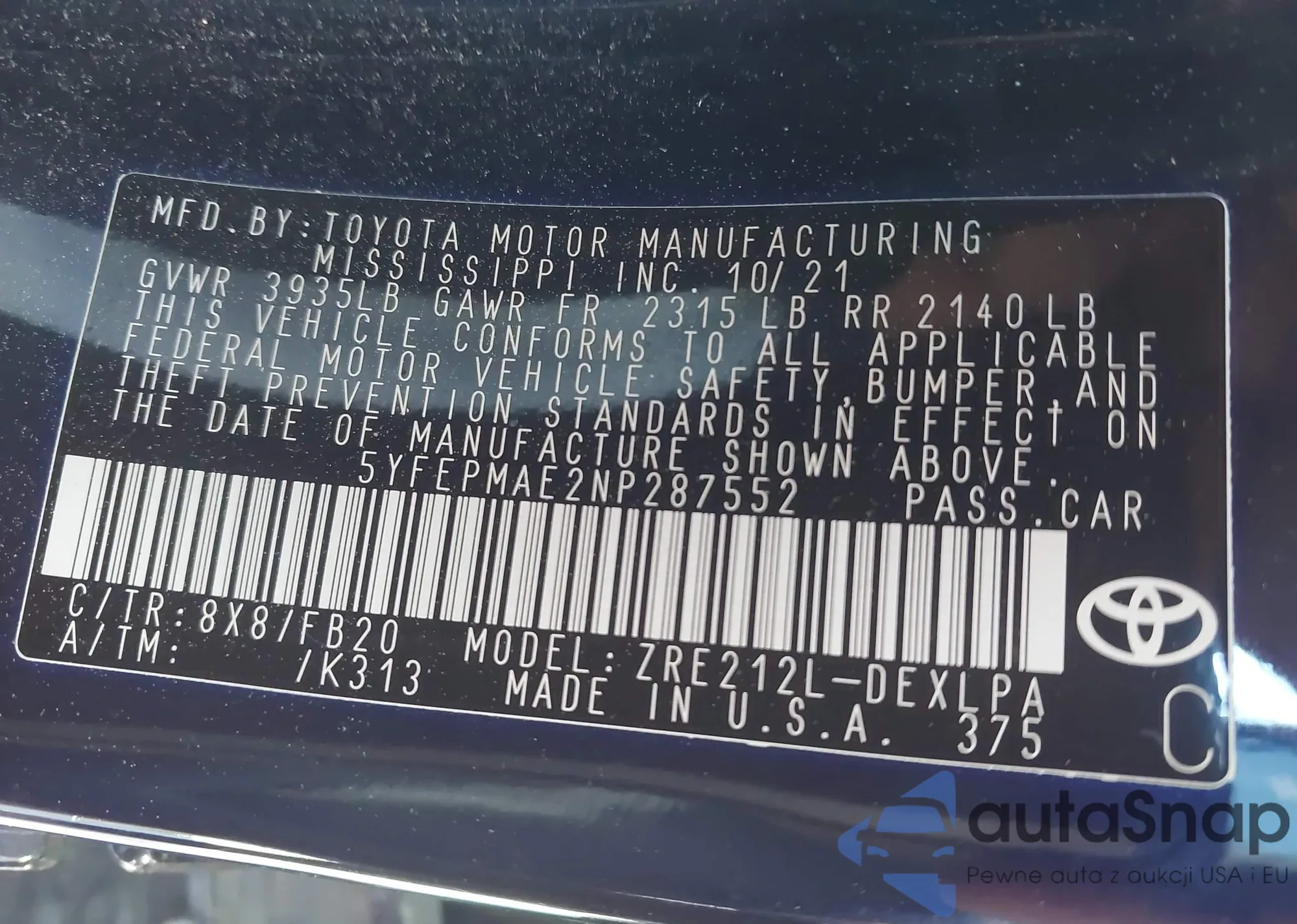 VIN: 5YFEPMAE2NP287552