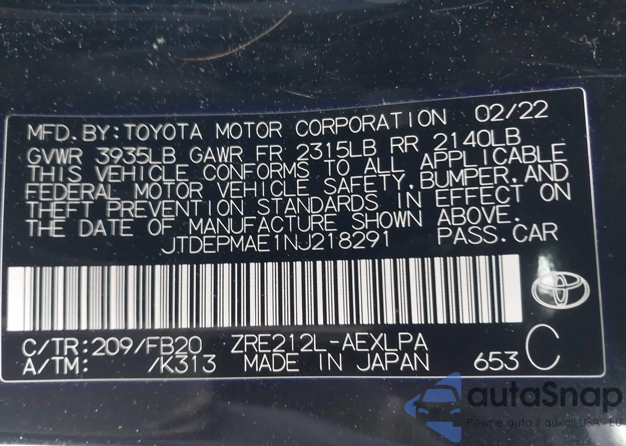 VIN: JTDEPMAE1NJ218291