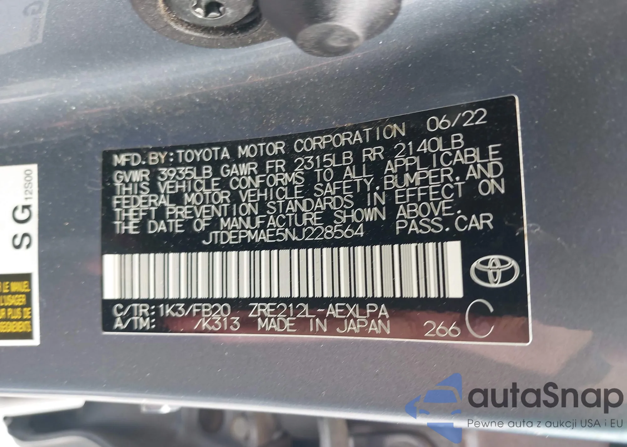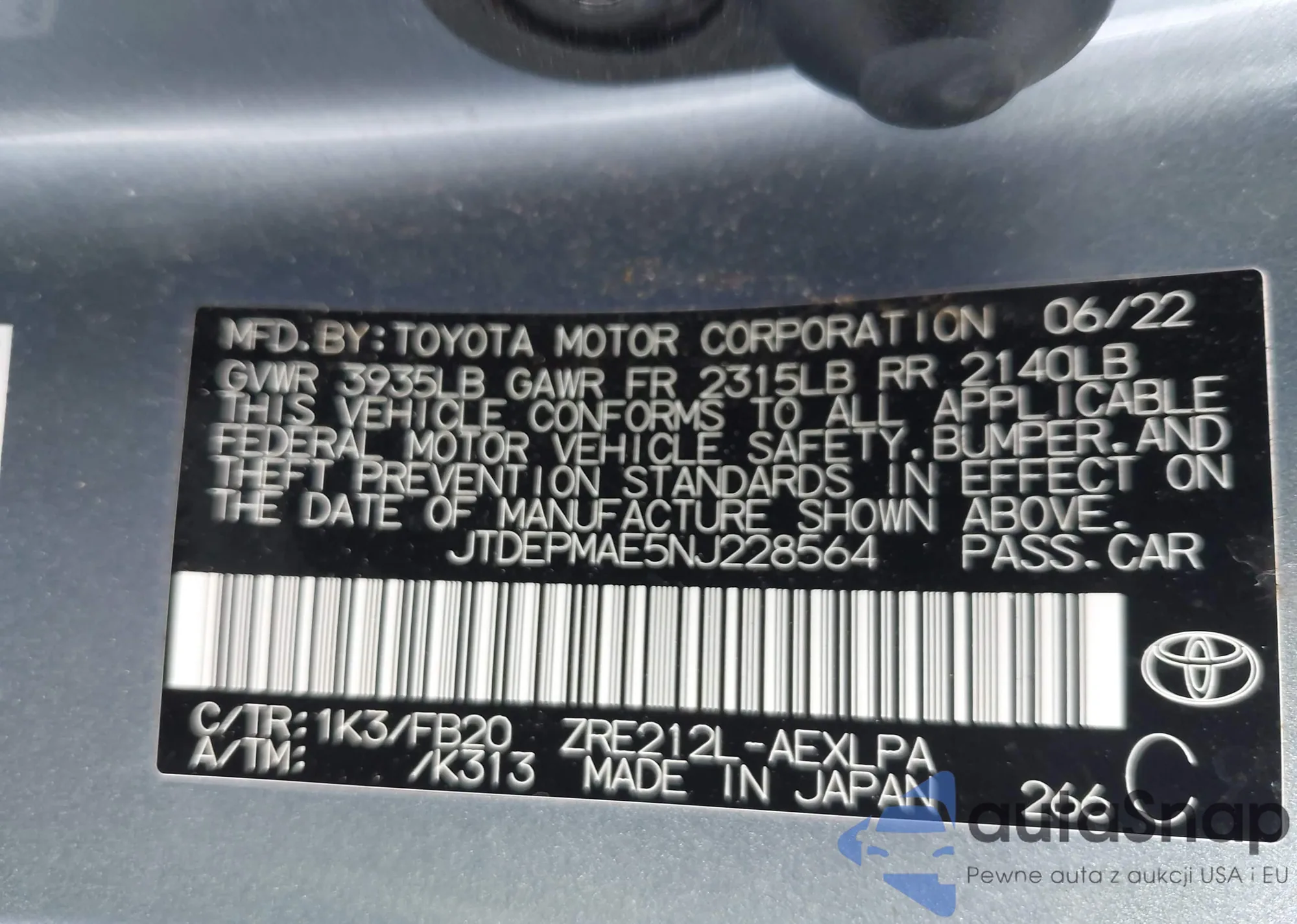 VIN: JTDEPMAE5NJ228564
