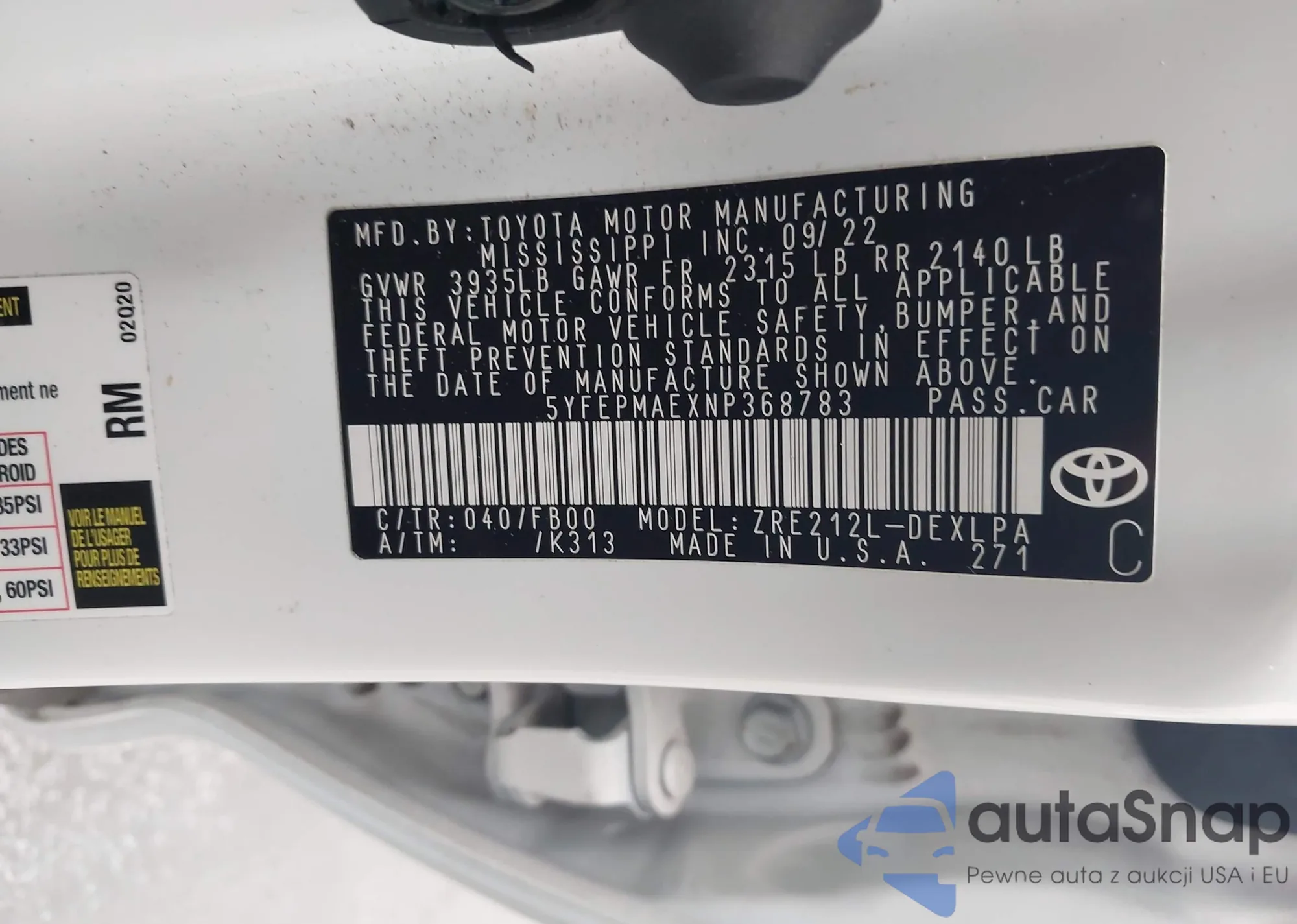 VIN: 5YFEPMAEXNP368783