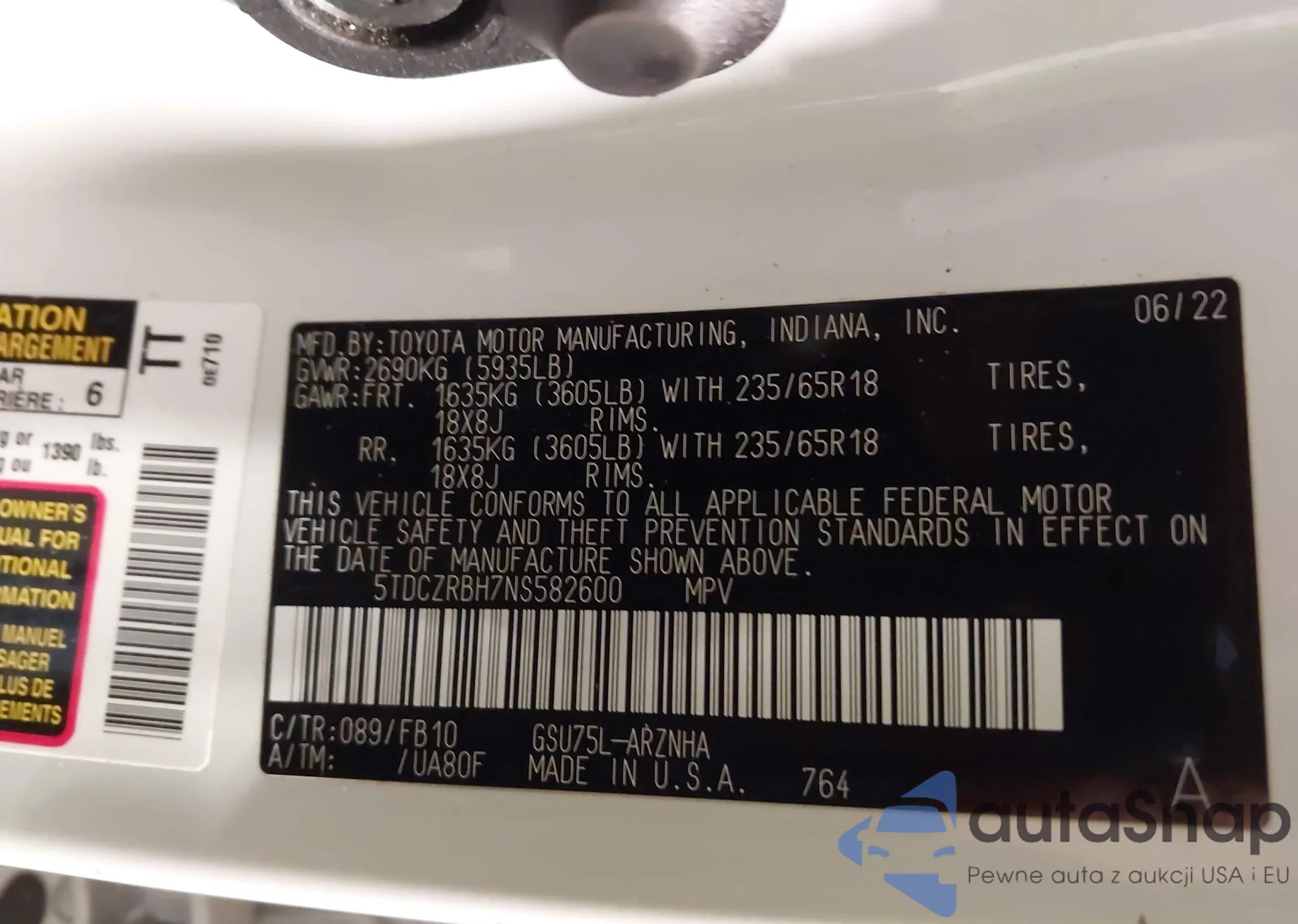 • VIN: 5TDCZRBH7NS582600