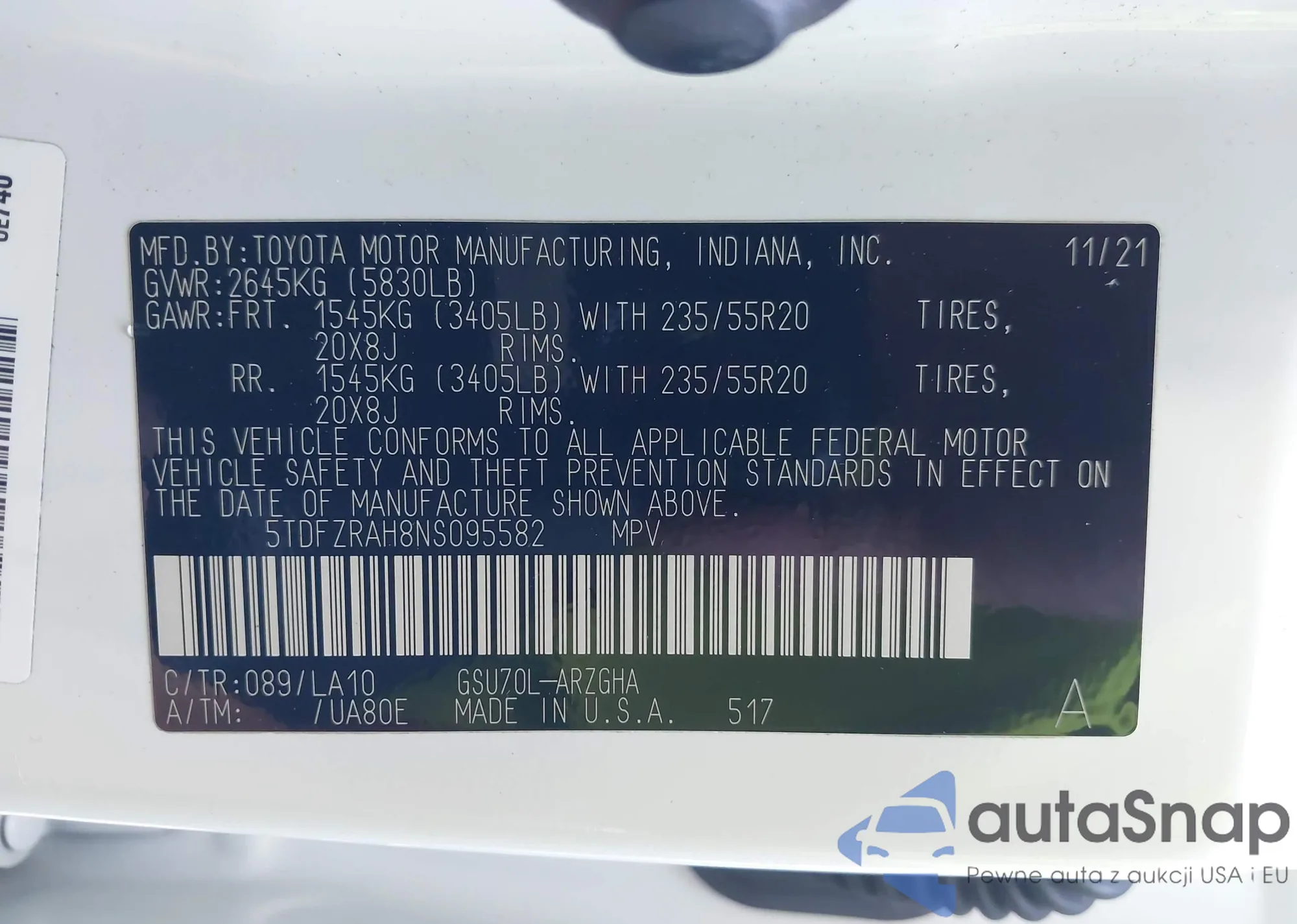 VIN: 5TDFZRAH8NS095582