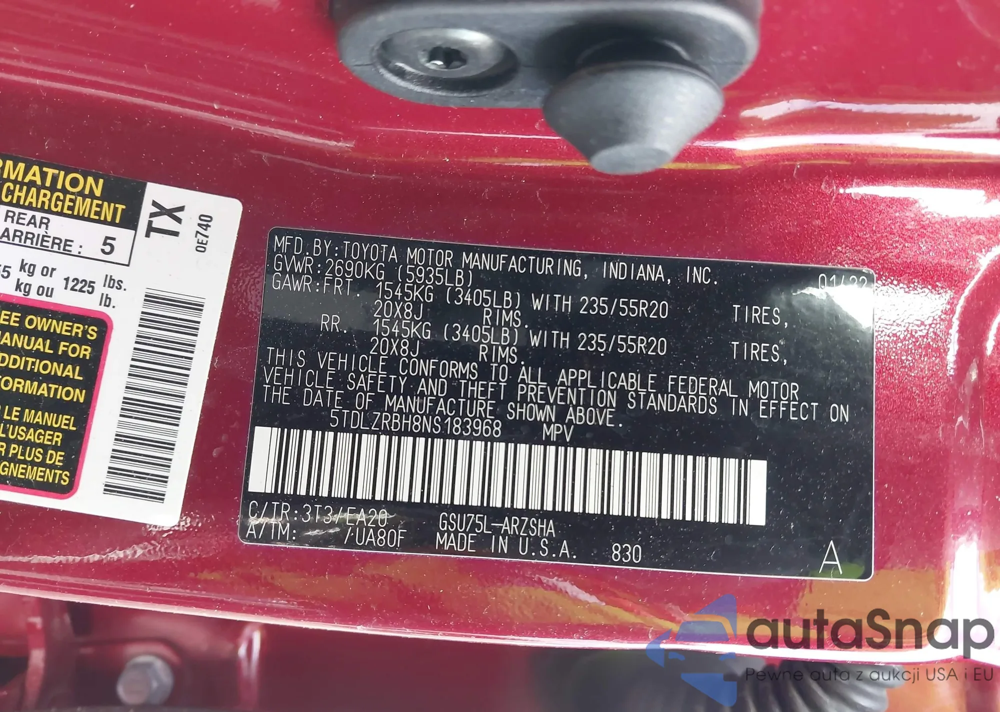 • VIN: 5TDLZRBH8NS183968