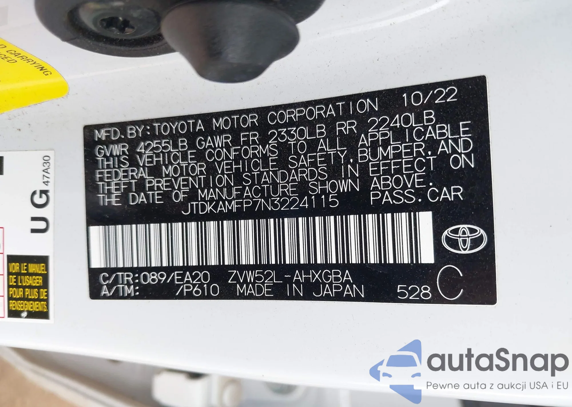 • VIN: JTDKAMFP7N3224115