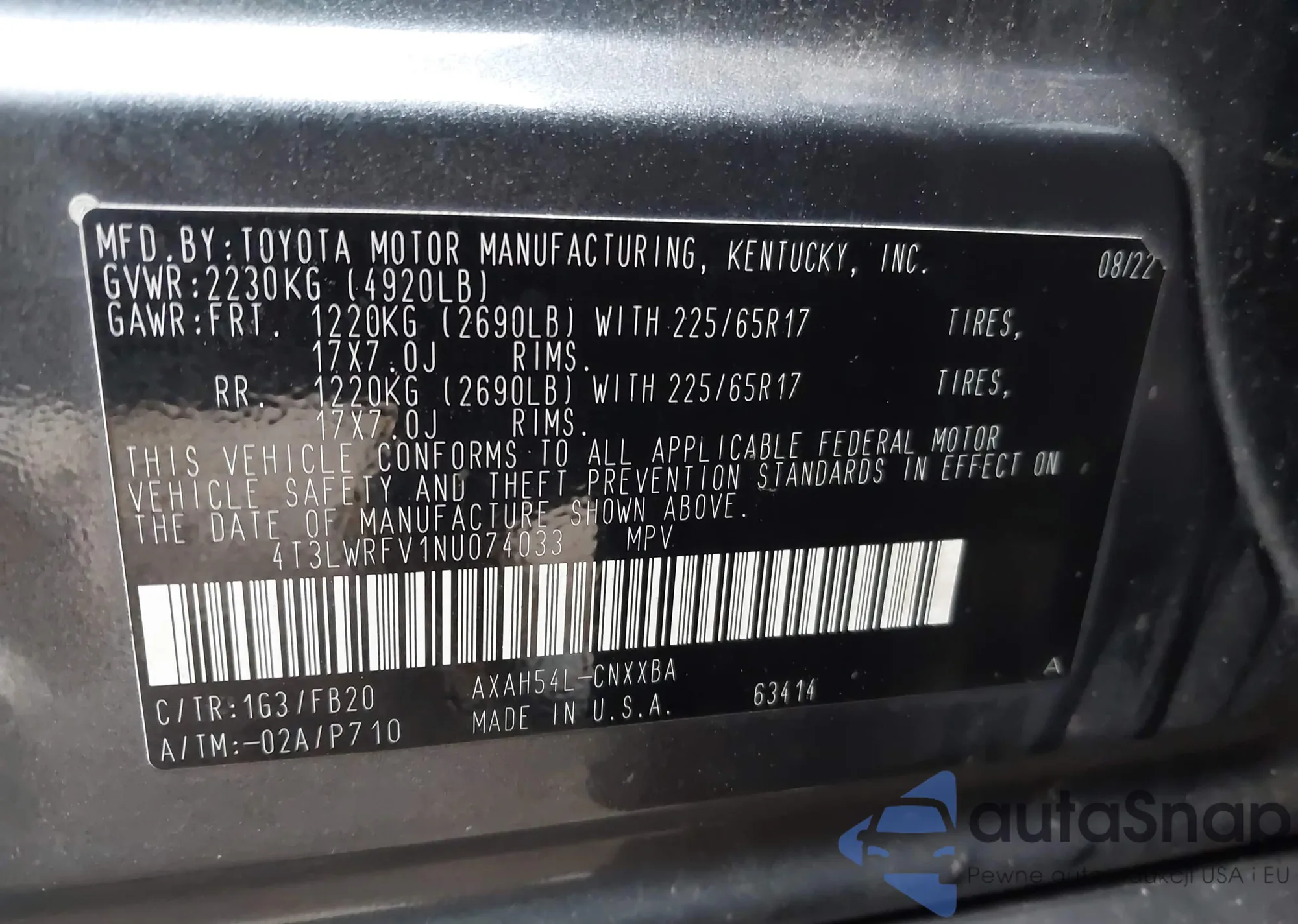 VIN: 4T3LWRFV1NU074033