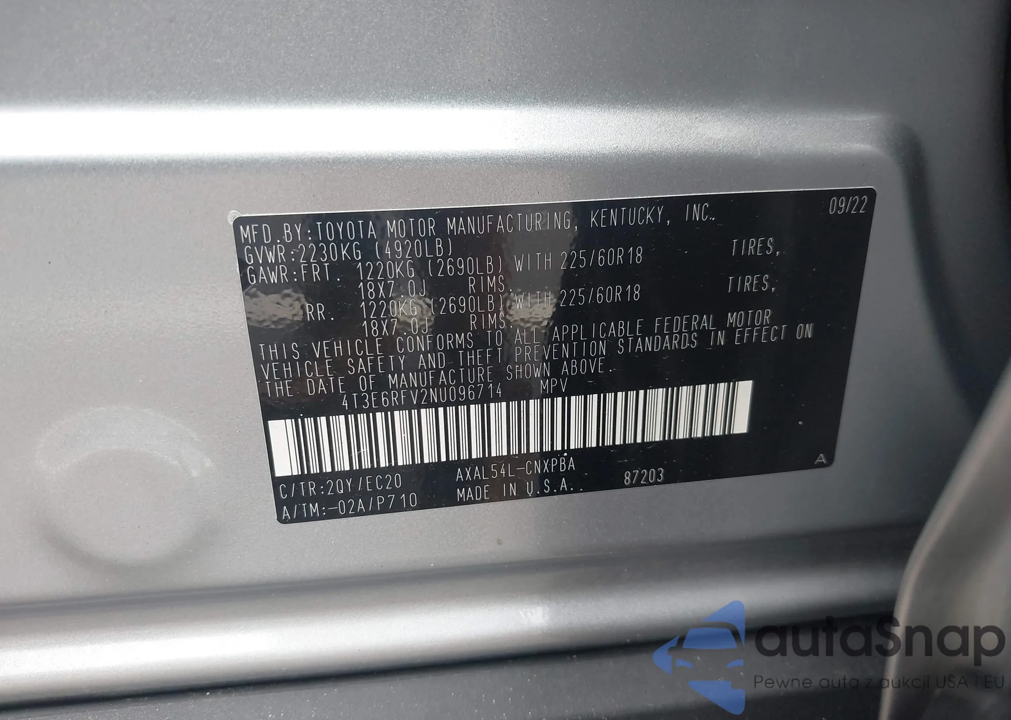 VIN: 4T3E6RFV2NU096714