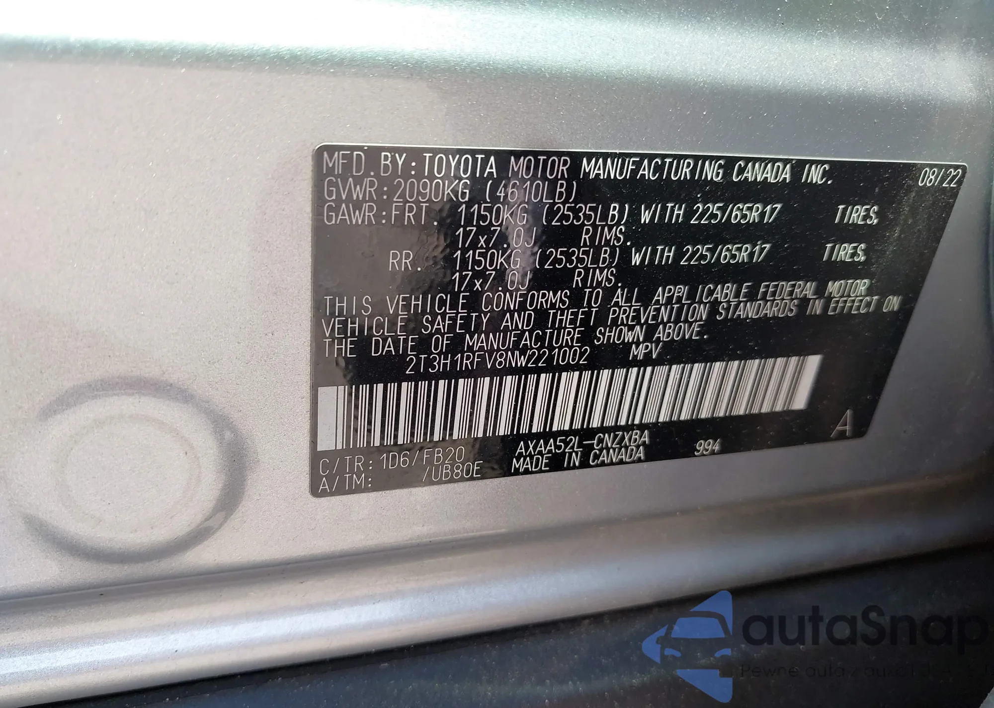 VIN: 2T3H1RFV8NW221002