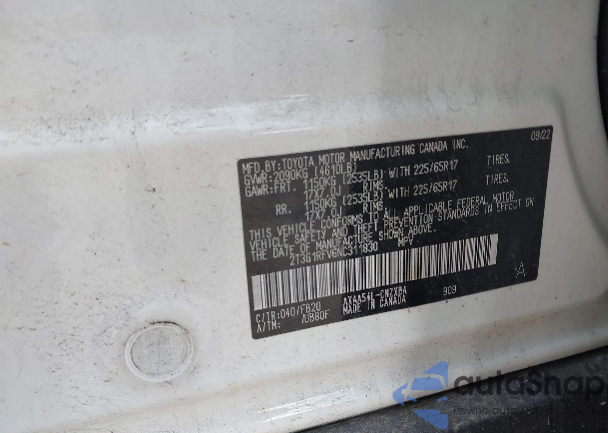 VIN: 2T3G1RFV6NC311830