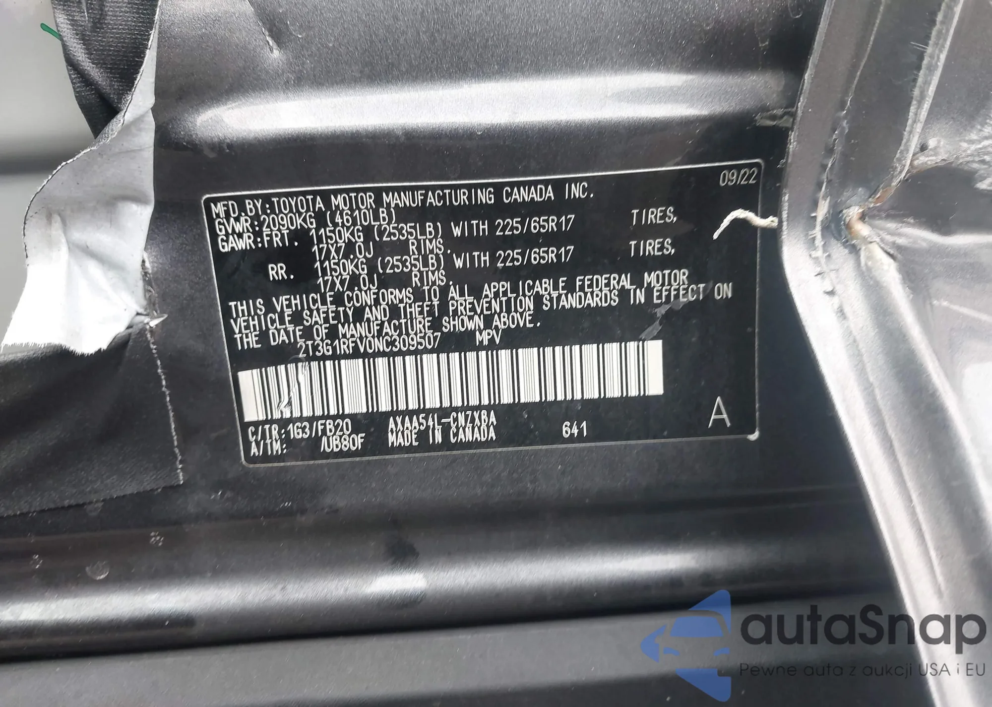 The car Toyota RAV 4 2022 (VIN 2T3G1RFV0NC309507) has not been auctioned before. The documents are clean, and the mileage matches or is below the market average. Sold by an insurance company – we recommend purchase. Delivery to the port will take approx. 6–8 weeks.