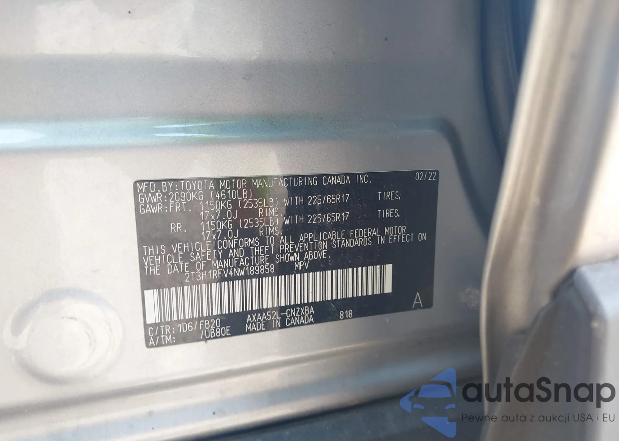 VIN: 2T3H1RFV4NW189858