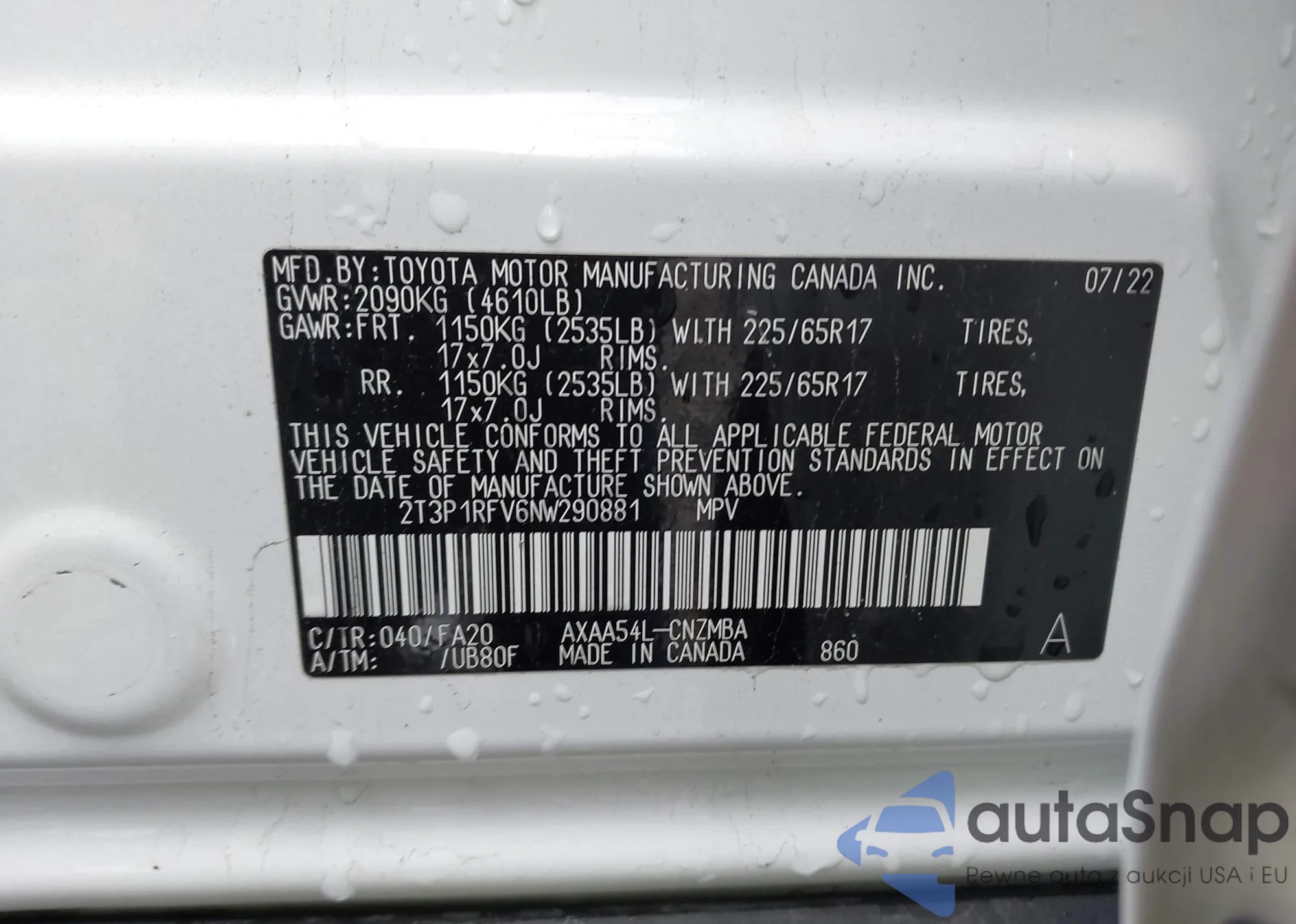 VIN: 2T3P1RFV6NW290881